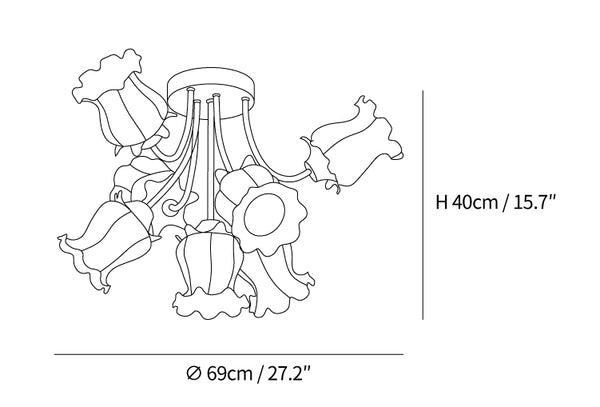 Model B 7 heads Size: Dia 72cm x H 41cm / ∅ 28.3″ x H 16.1″