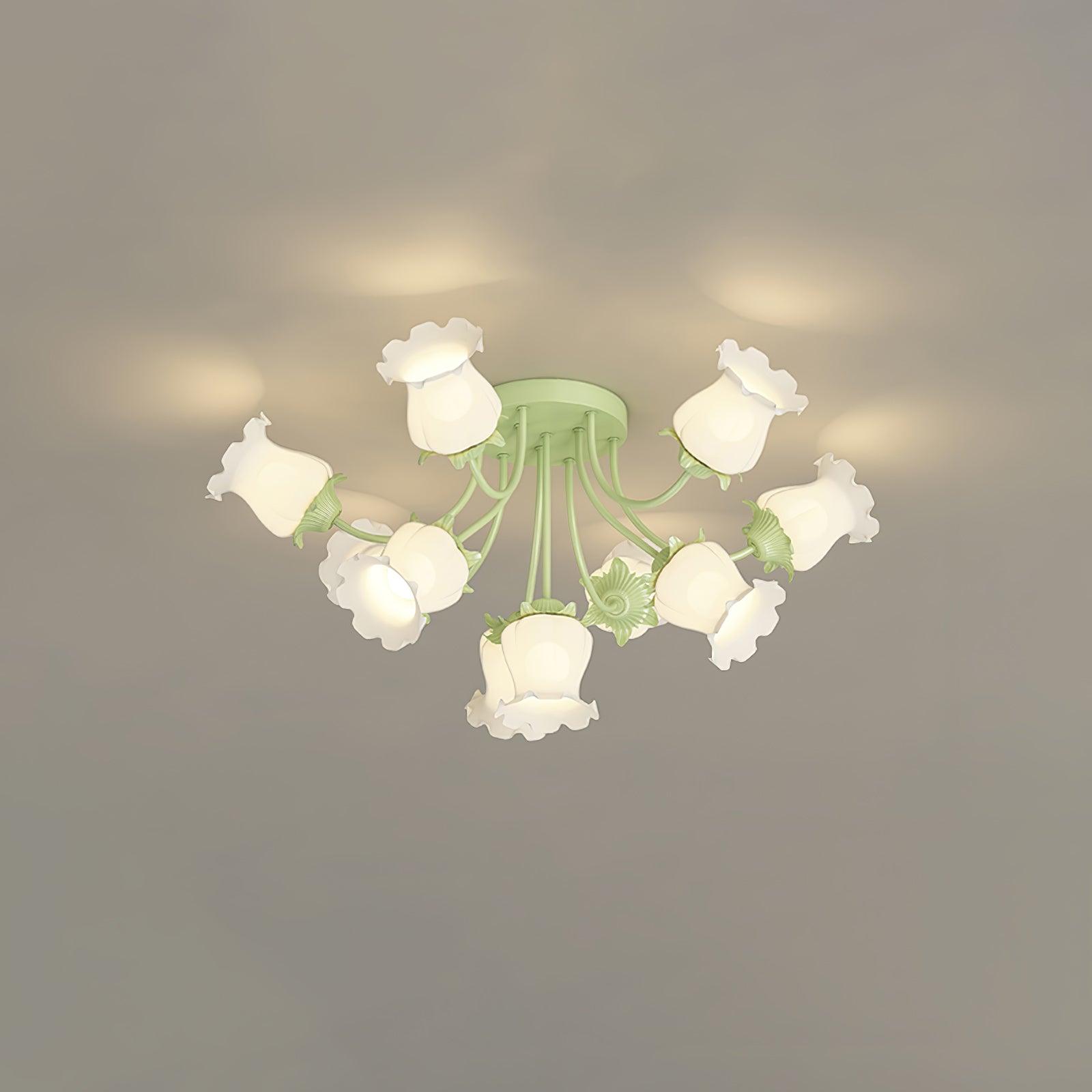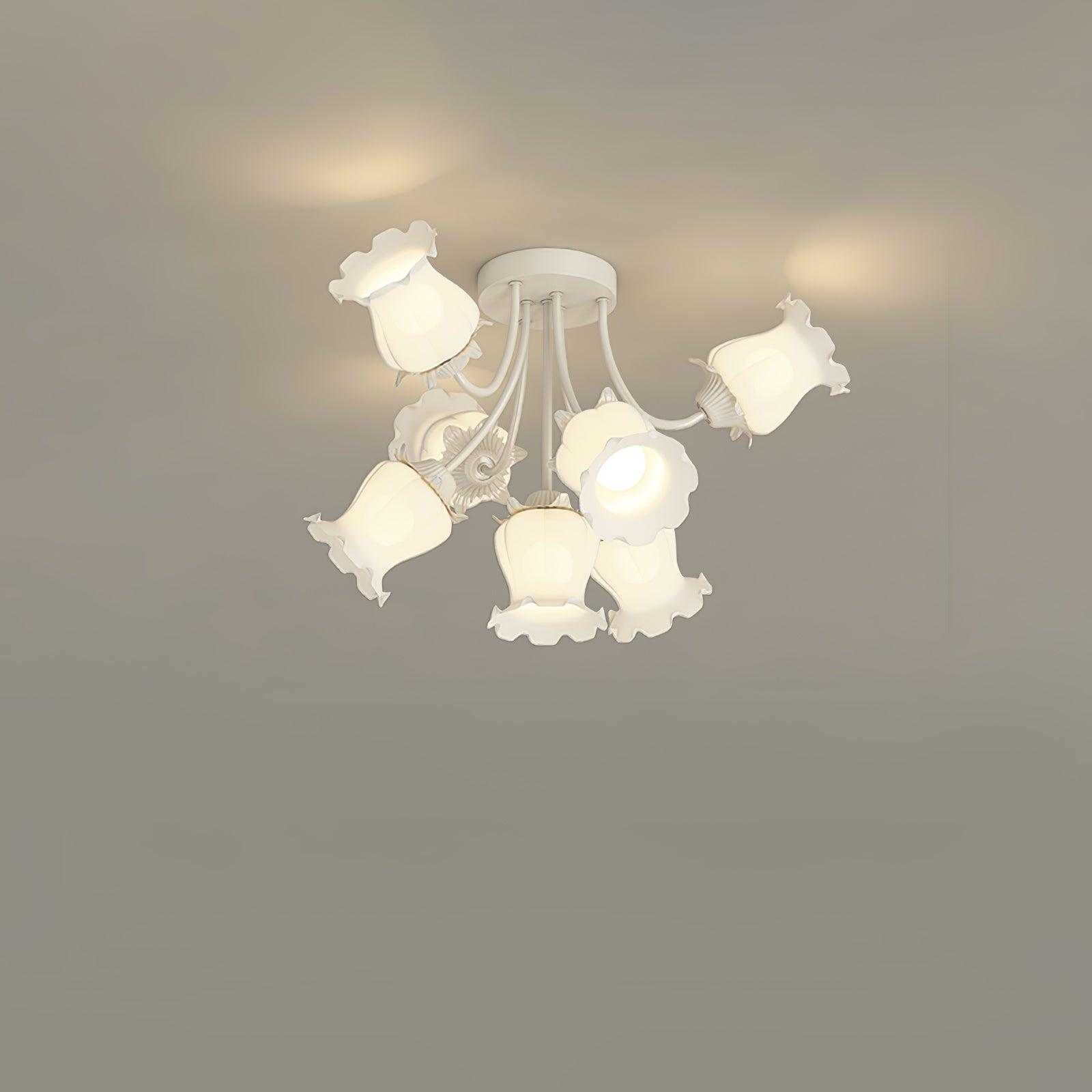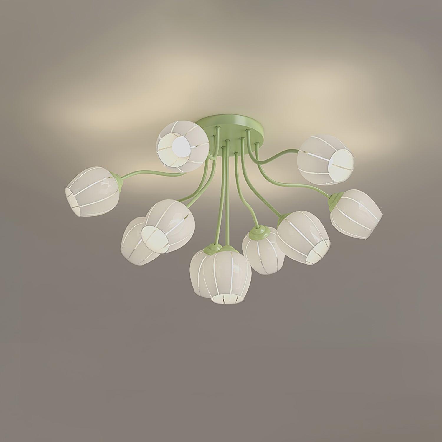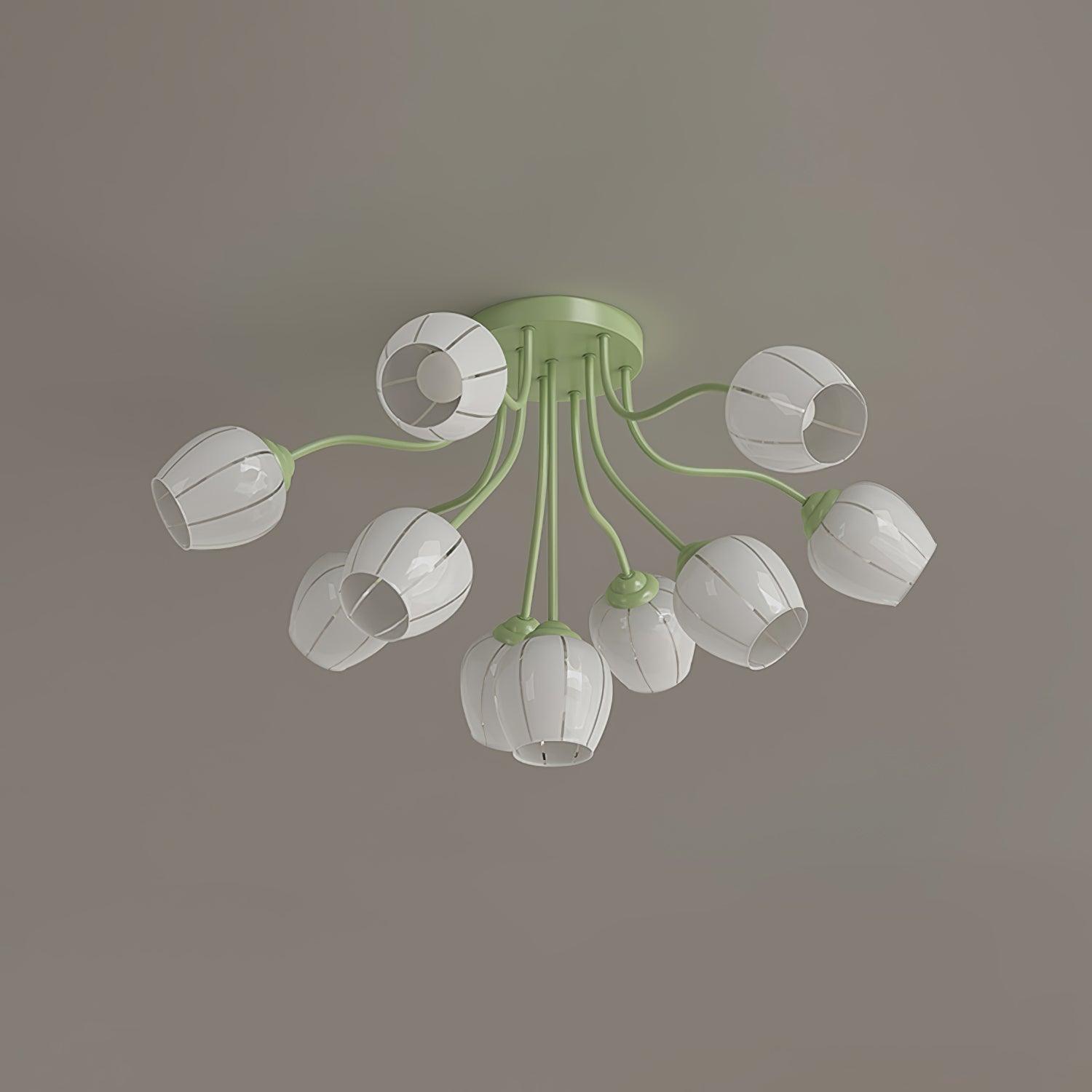 This stylish Garden Flower Ceiling Lamp brings a touch of natural elegance to any dining room. Featuring cream-colored glass and intricate flower patterns, it's sure to enhance the atmosphere of your home. Crafted with an eternal style in mind, this chandelier adds a unique look to any restaurant.
