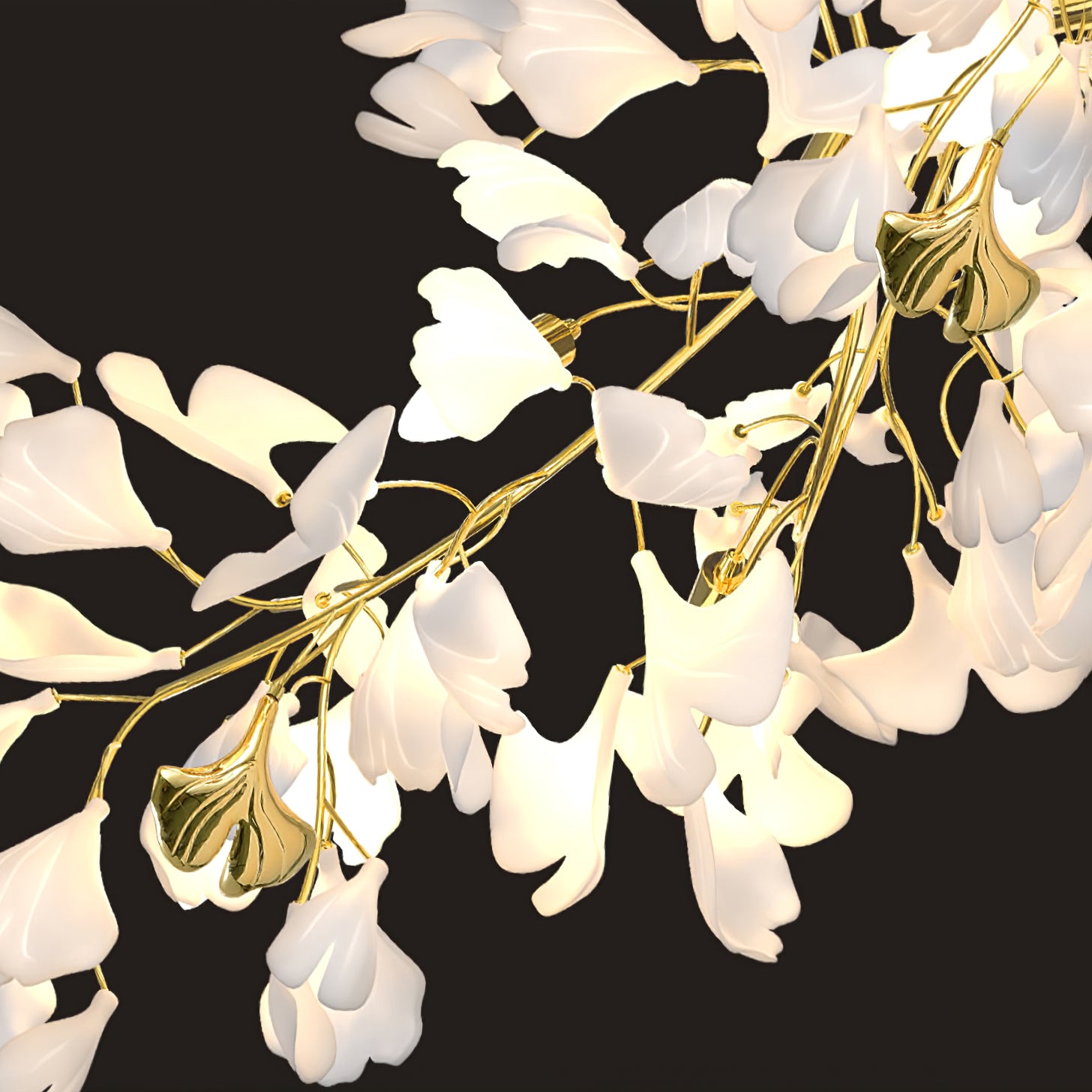 This ceramic ginkgo tree petal chandelier shows its luxurious style in overall design, material, and manufacturing technology. It will stand out among many lighting styles. The brass lamp body is covered with exquisite ceramic petals, which reflect the perfect combination of lighting design and natural plants. The surrounding ceramic petals unfold outward, lifelike. Fine workmanship. Each chandelier is a unique art.