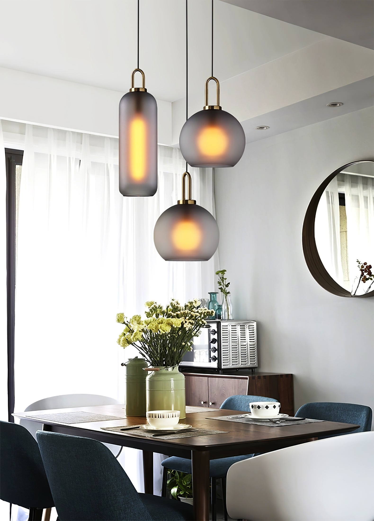 Glass Shade Finishes: Transparent, Frosted smoke gray.