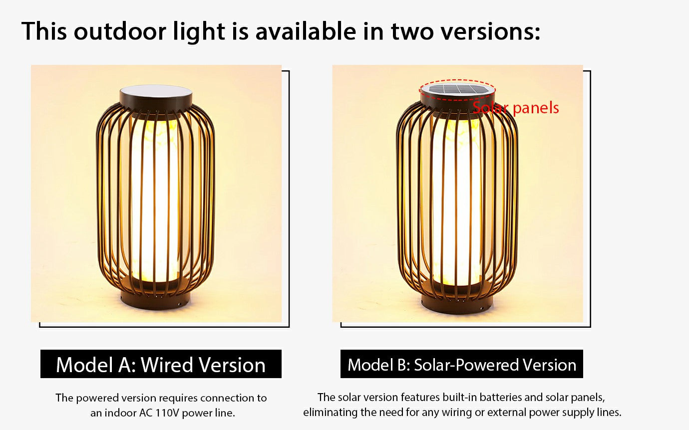 Voltage: AC 110-240V (Wired version) / DC 3.2V (Solar-powered version).