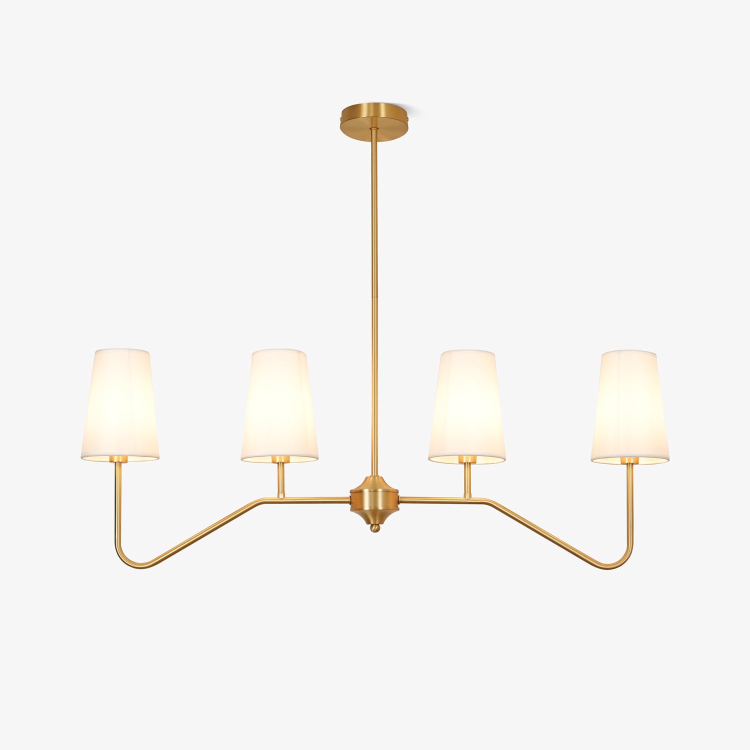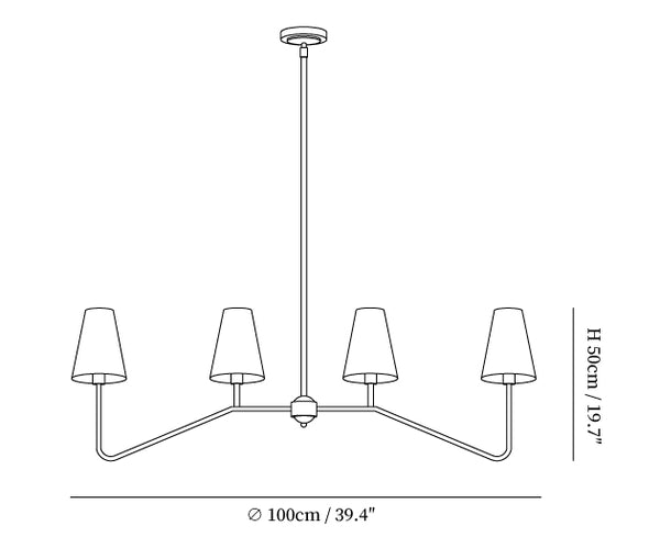 Transform your space with the Grayson Chandelier. With a contemporary and streamlined aesthetic, this chandelier adds an urban element to any room. The four evenly placed lampshades not only offer efficient illumination, but also symbolize the equilibrium and synergy of city life. Ideal for simplistic home interiors, this chandelier is both fashionable and utilitarian.