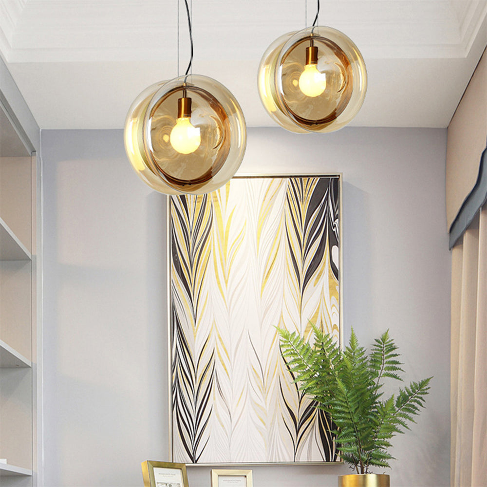 - Our round art glass pendant light brings you. It can be flexibly installed in various places such as living room, dining room, bedroom, study, bedside, bar, hallway, etc. making it the perfect lighting solution for every corner of your home or commercial space. Whether you want to create an intimate atmosphere in your bedroom or a chic atmosphere in a trendy bar, this pendant light will easily adapt to your needs.