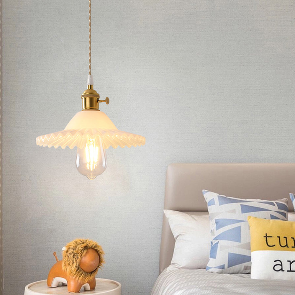 - 7 unique styles: With 7 attractive shapes to choose from, pendant lights allow you to create personality and style. From charming small cones to graceful domes to delicate floral designs, each shape is a work of art in itself. Intricate lines and patterns carved into the brass and glass give these pendants a unique personality. Choose the shape that suits your aesthetic needs and make it the focal point of your interior.