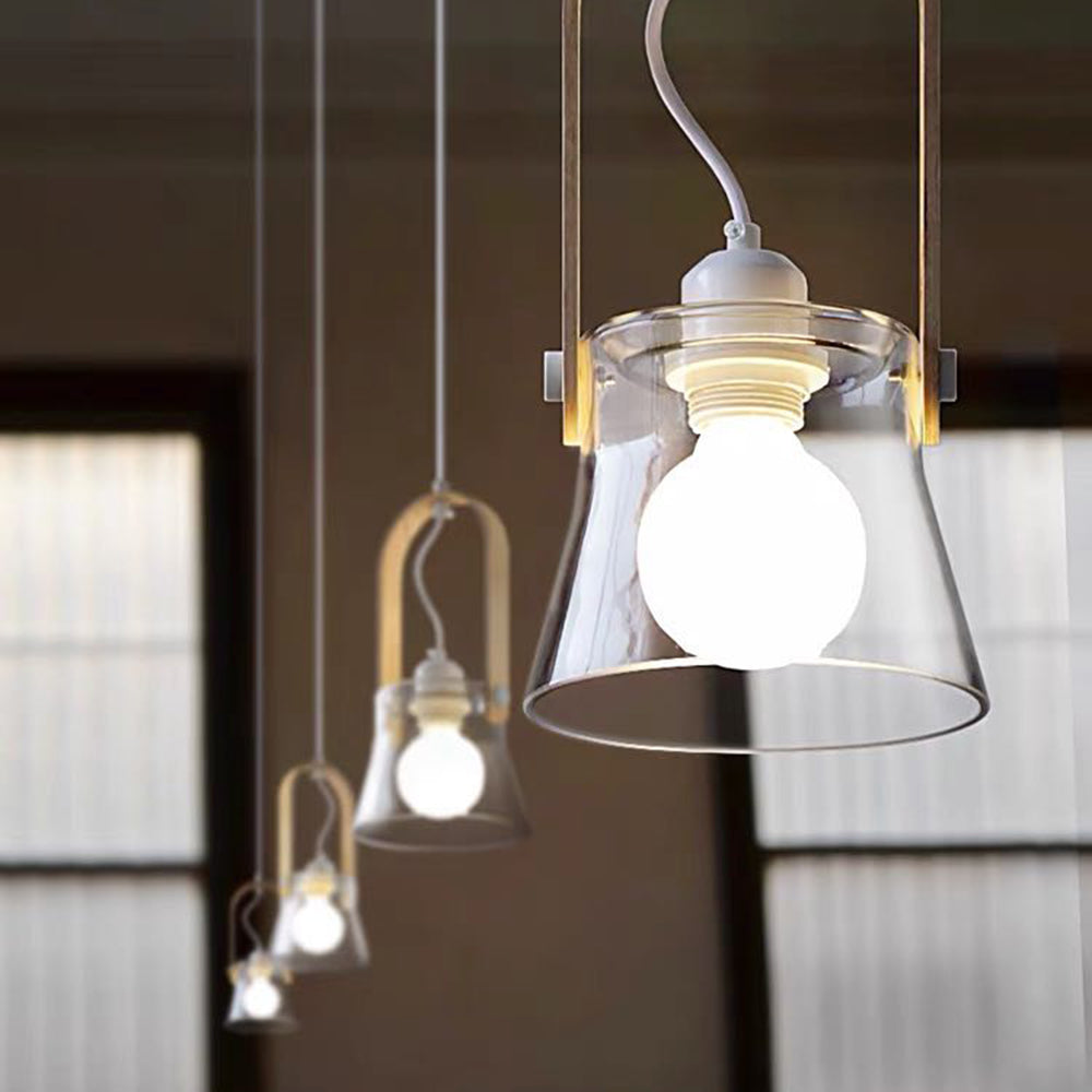 - With a modernist minimalist style as its hallmark, the pendant light design is simple yet filled with design elements. The warm yellow frame combined with the transparent lampshade creates a warm and modern atmosphere.