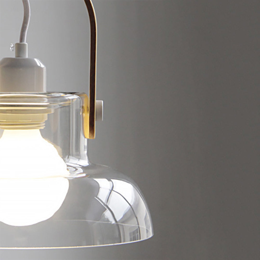 - The metal pendant lamp holder is paired with a glass transparent bowl shaped lampshade to create a minimalist and fashionable design, adding unique visual effects and reflecting the minimalist style of modernism.