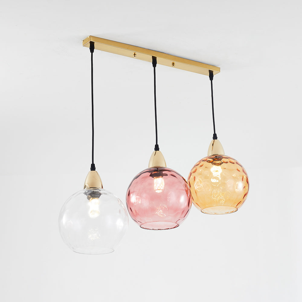 - Immerse yourself in a world of color with this charming pendant light that adds vibrancy and character to your room.Featuring a kaleidoscope of hues that evoke a playful palette, each glass ball features a mesmerizing water ripple effect that adds depth and charm to your interiors.From rich jewel tones to soft pastels, the color spectrum invites you to unleash your creativity and express your unique style.Whether you want a pop of color or a subtle accent, this pendant light is guaranteed to become the centerpiece of any room, spark conversation, and explode with joy with its gorgeous hues.