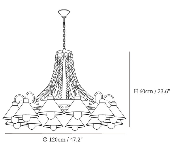 12Heads Size: Dia 120cm x H 60cm / ∅ 47.2″ x H 23.6″