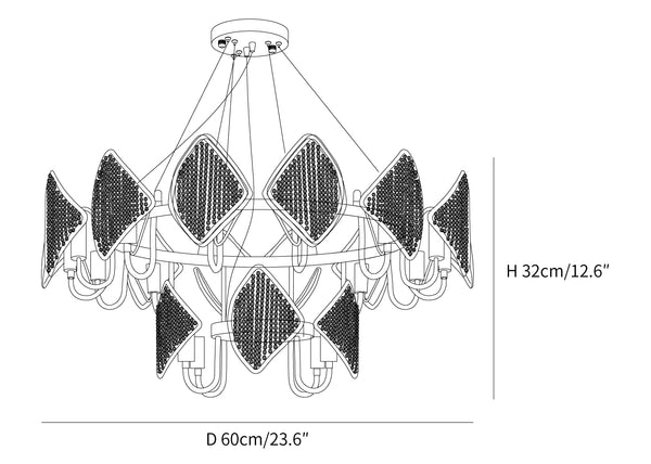 12 heads Size: Dia 60cm x H 32cm / ∅ 23.6″ x H 12.6″