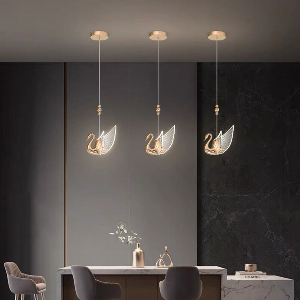 - Enhance the beauty of your home with the Kady Modern Creative Swan Pendant Light, a masterpiece that blends both form and function. This pendant light is carefully crafted from high quality metal and acrylic to ensure long-lasting durability. The sturdy metal bracket ensures stability and is also resistant to rust and corrosion. Rest assured that your investment in style and content is safe.
