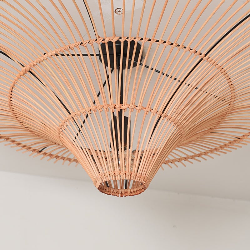 Made of natural rattan with metal frame inside. A sturdy oversized rattan lamp suitable for indoor or outdoor lighting under cover and some designs are suitable for exposed outdoor.