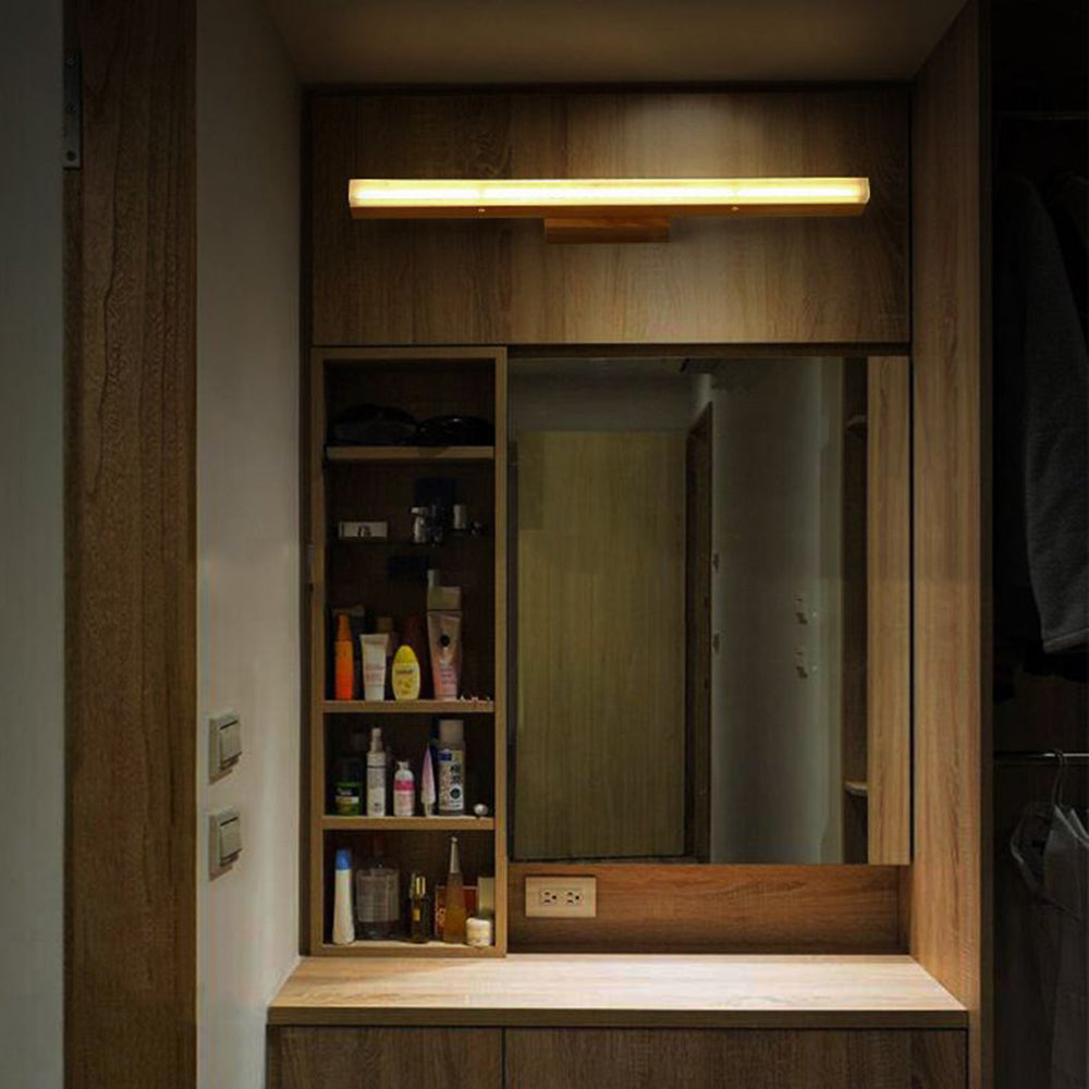 - Made of solid wood and acrylic, the linear wall lamp has a modern aesthetic and durable construction.