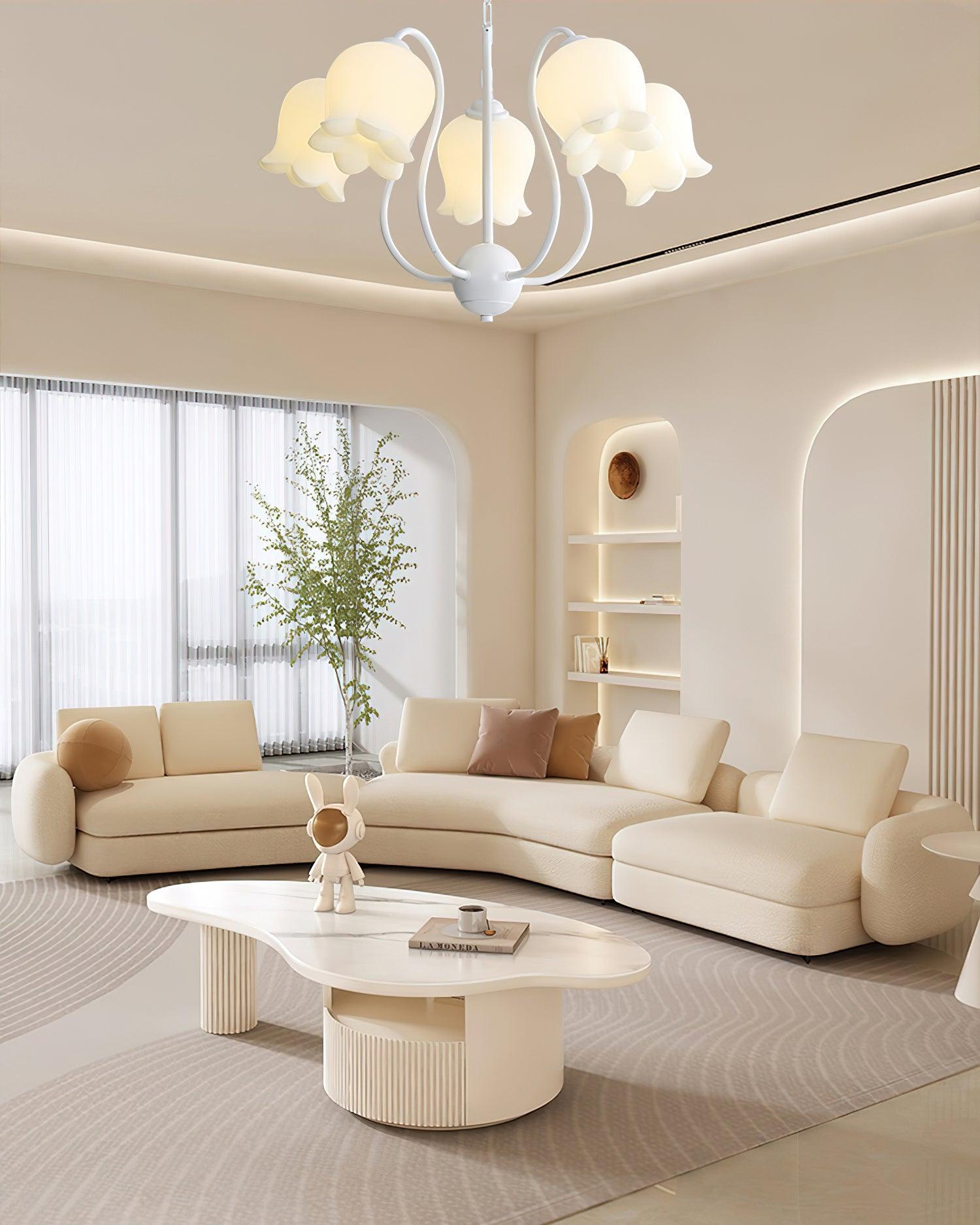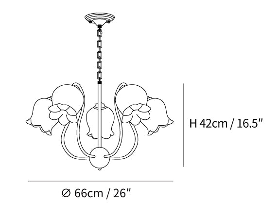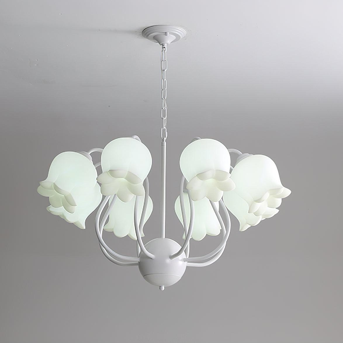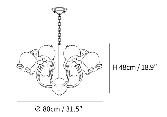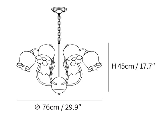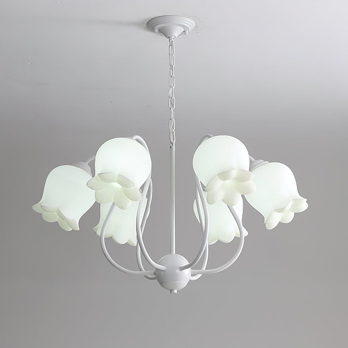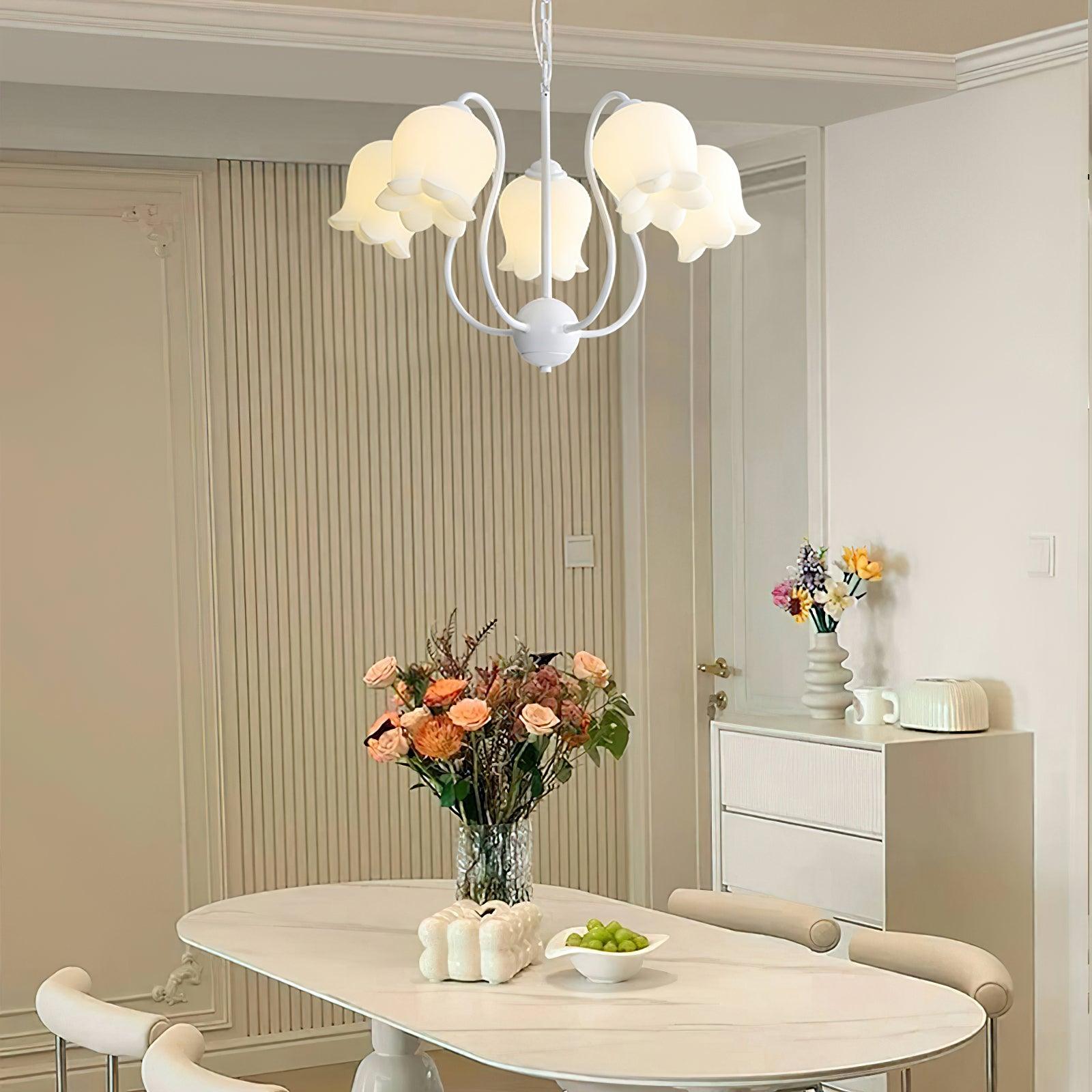 The Lilium Chandelier is a beautiful, vintage-inspired French lily-shaped pendant light with a matte PE lampshade in a garland-style design. Its sophisticated style is perfect for adding a touch of French countryside charm to any room.