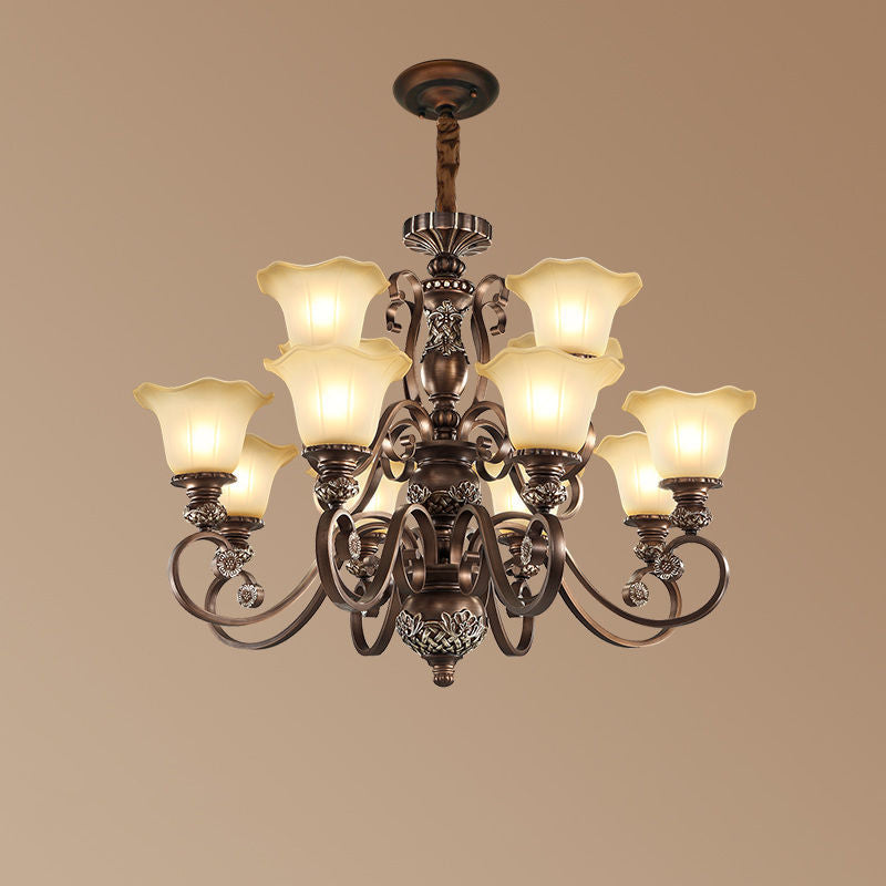 Lily Retro Flower Pendant Light Metal Glass Living Room Bedroom