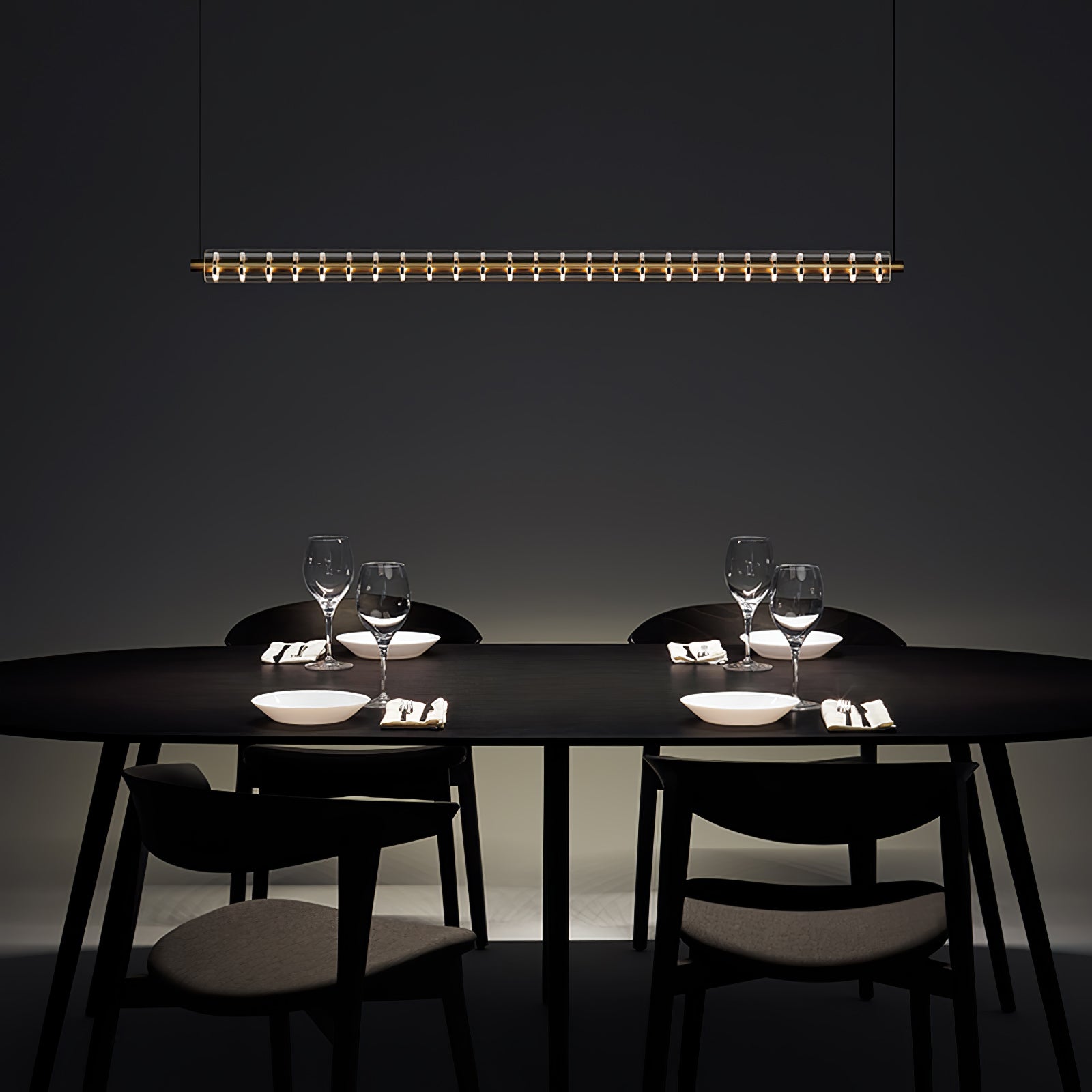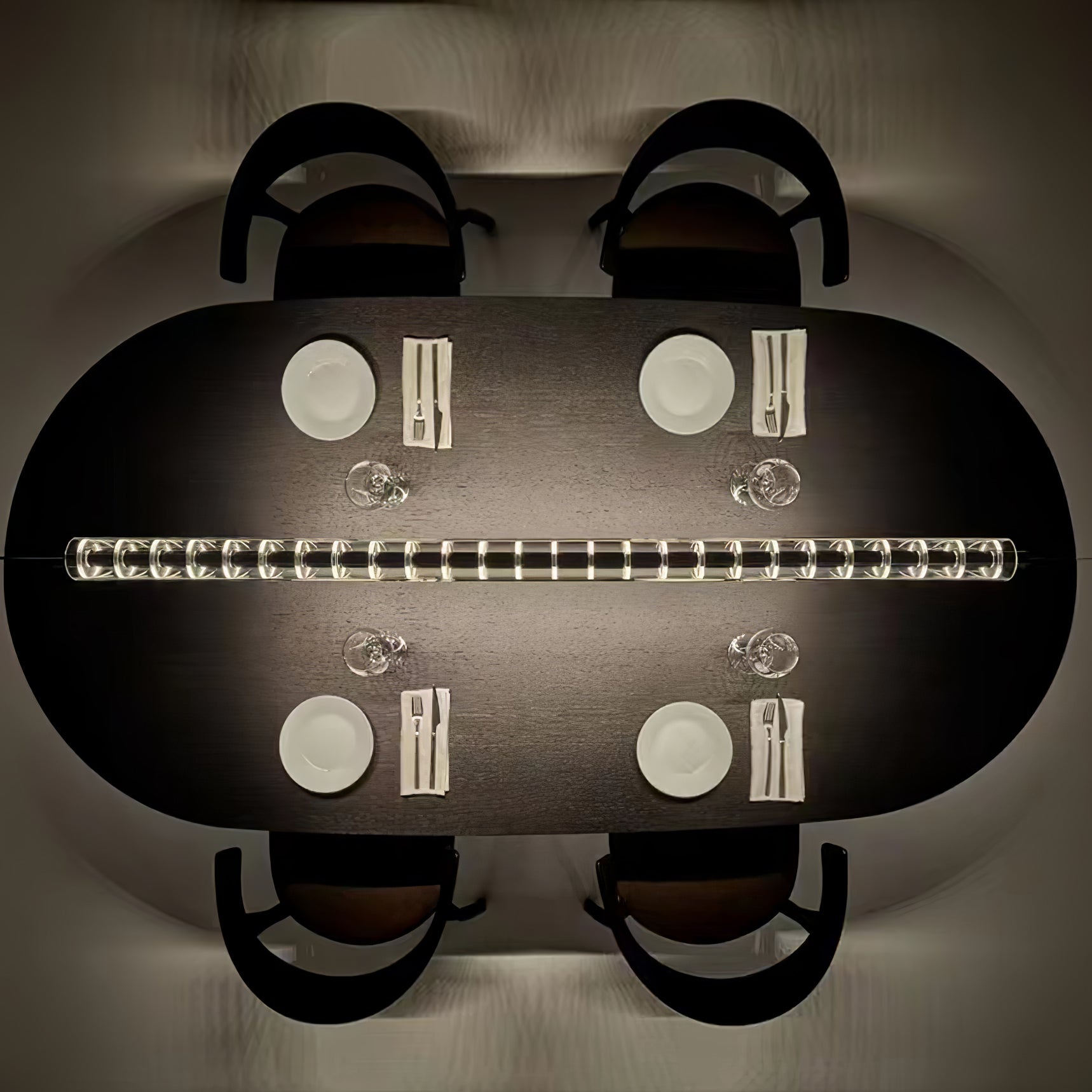 Daring and fanciful, Loop appeals to industrial lyricism with a design inspired by electrical insulators. The protagonist of the decoration, its body is a sequence of light disks with an aluminium interior. It's adorned by a suspended glass cylinder that acts as a fastflowing, controlled source of projected light.