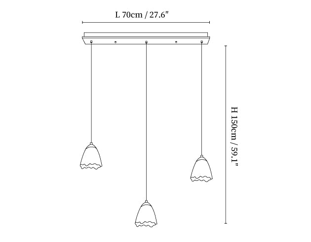 Round canopy 3 heads Size: Dia 30cm x H 150cm / ∅ 11.8″ x H 59.1″