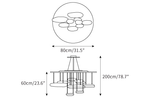 Suspension size: Dia 80cm x H 200cm / ∅ 31.5″ x H 78.7″