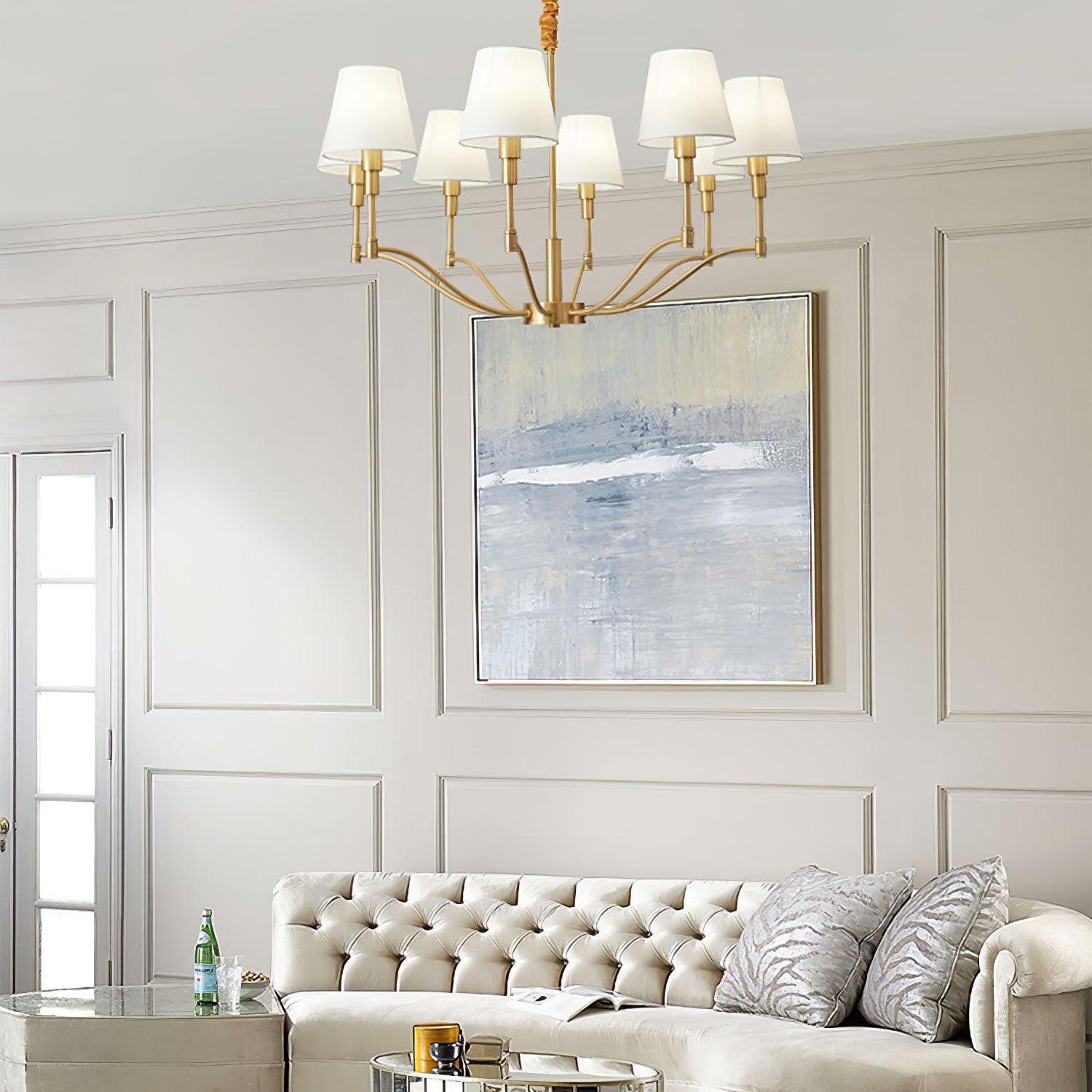 This Meridian Mid-Century Brass Chandelier offers timeless style with its elegant design inspired by modern mid-century style. Constructed from sturdy brass, this chandelier is sure to offer long-lasting beauty that will add a special touch to any space.