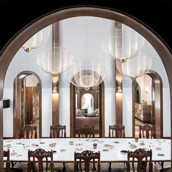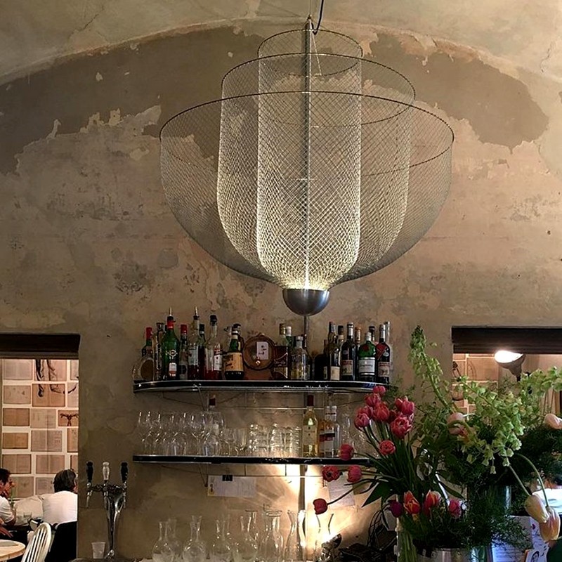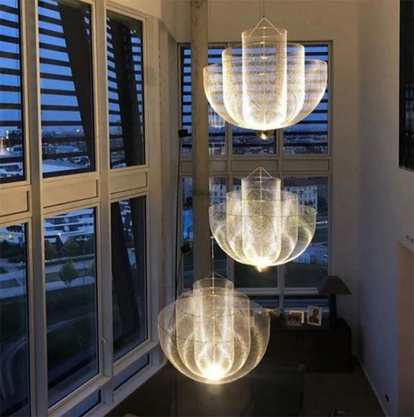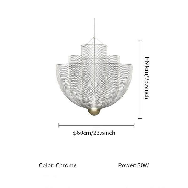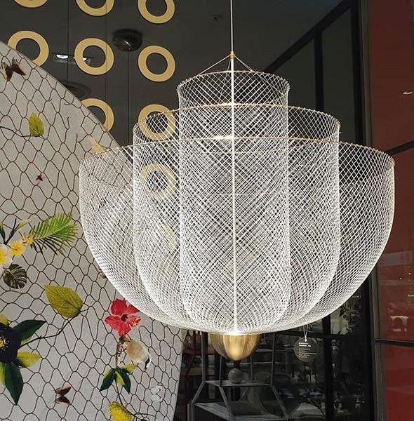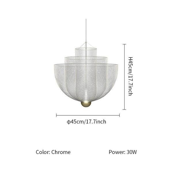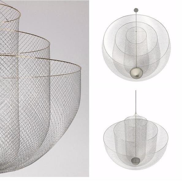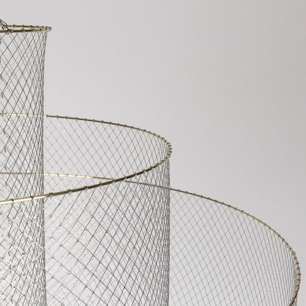The Meshmatics chandelier is a design by the Dutch designer Rick Tegelaar. Tegelaar likes to work with everyday materials such as mesh and waste wood. By re-examining these materials, he comes to new aesthetic qualities and applications of the materials. The beautifully designed Meshmatics Hanging lamp is a perfect example of this; this is namely made of metal wire. Extra special is that Tegelaar specially designed to achieve this design, a machine and tools. With his own invented equipment, Tegelaar was able to shape the shape of metal wire in a very controlled and accurate way, with the majestic Meshmatics Hanging lamp as a result. The surprising design, with the integrated and dimmable LED light source that shines upwards, provides exceptional light and a play of shadows on the ceiling. The ingenious layered steel frame shines gracefully through the LED light that with 2700 Kelvin gives a very warm white light (maximum 30 Watt). The chandelier-like lamp has a diameter of 60 centimeters and is 60 centimeters high. The transparent cable on which the lamp hangs has a maximum length of four meters.