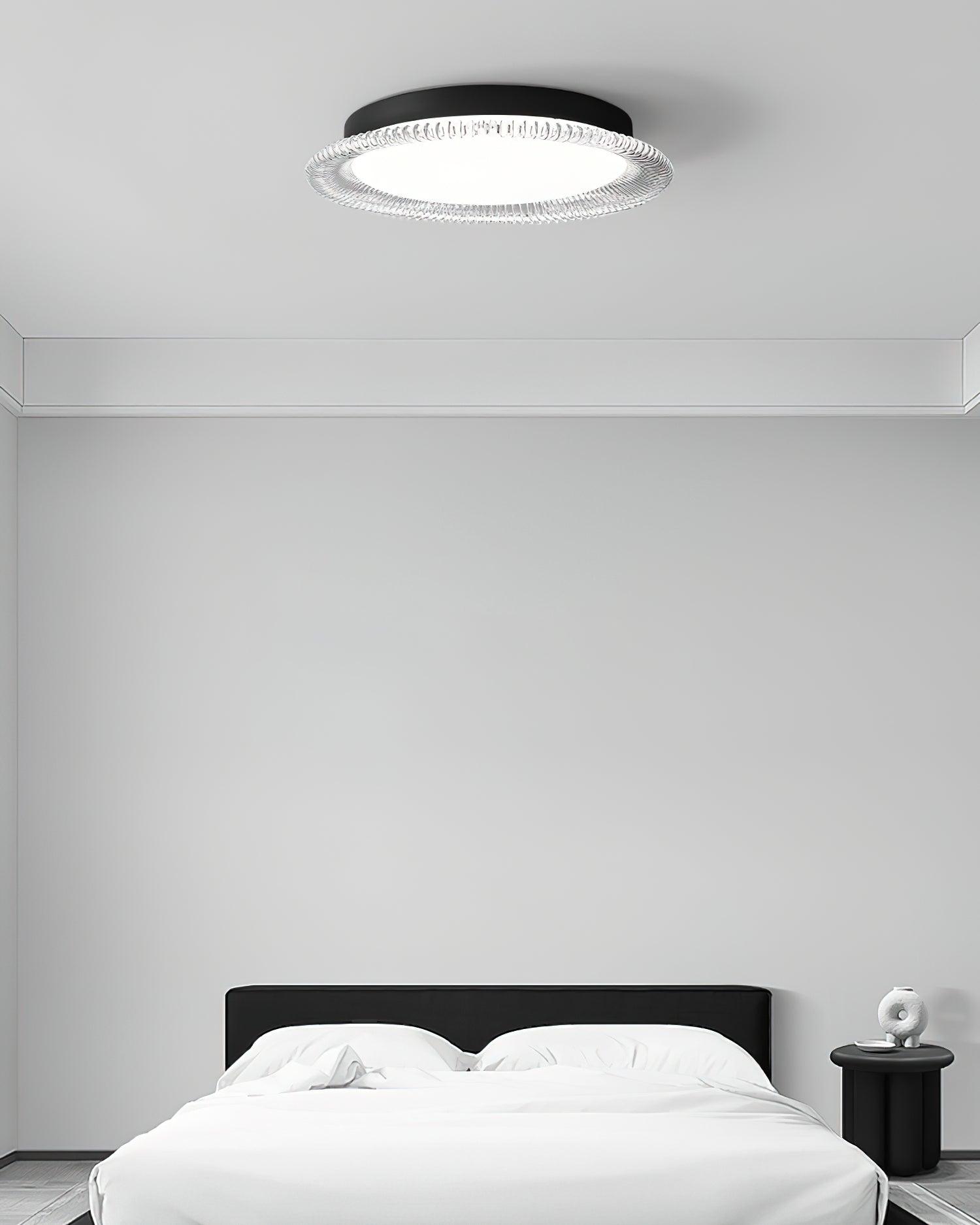 This lamp combines a sturdy aluminum frame with a unique acrylic engraved design to create a unique ring-shaped appearance. Light is emitted through the engraved acrylic, bringing delicate light and shadow changes to the interior while showing a simple, modern aesthetic.