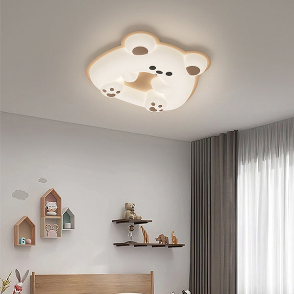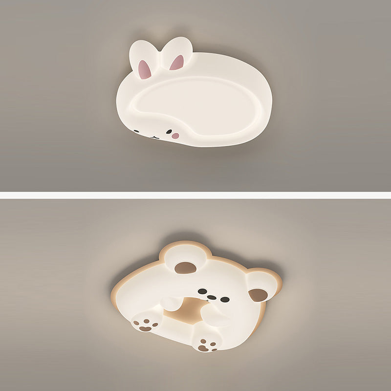 Modern Art Deco Bunny Bear PC Iron LED Flush Mount Ceiling Light For Bedroom