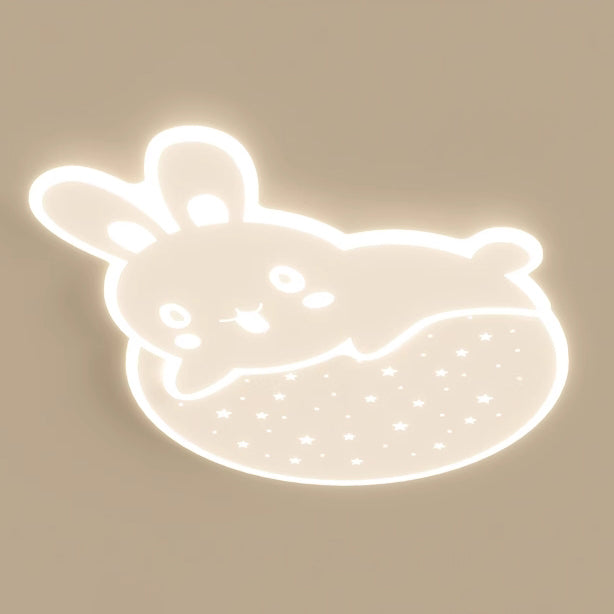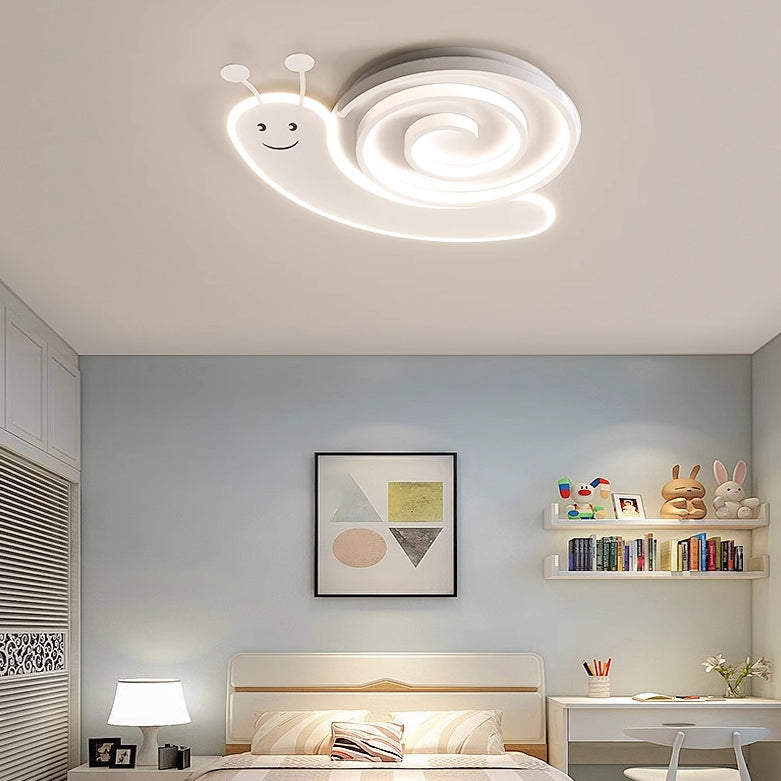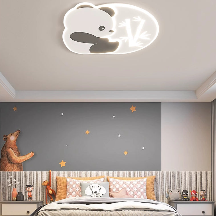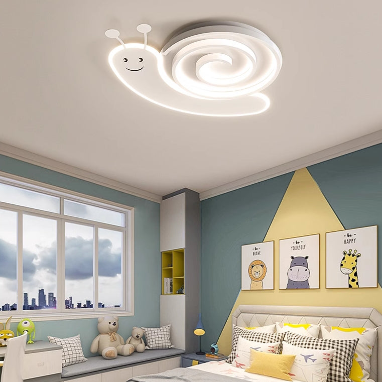 Modern Art Deco Snail Panda Rabbit Round Acrylic Iron LED Flush Mount Ceiling Light For Bedroom
