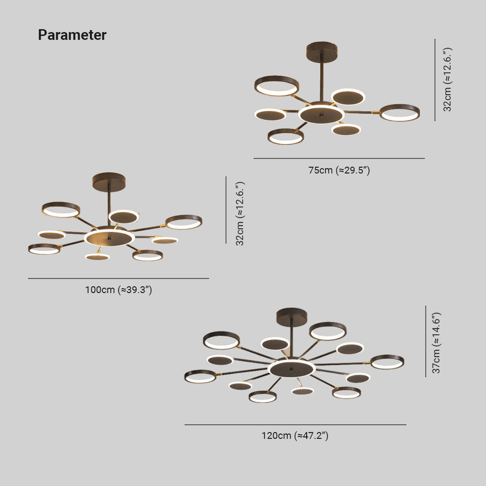 - With our black chandelier, creative design has an allure. Choose from 6, 8, or 12 lights in one of three different styles, each offering a unique and alluring arrangement of lights. You have the option to alter the light's shape and direction to suit your preferences because the lamp heads are movable up to 180 degrees. Your lighting can be as dynamic and ever-changing with this chandelier as your mood.