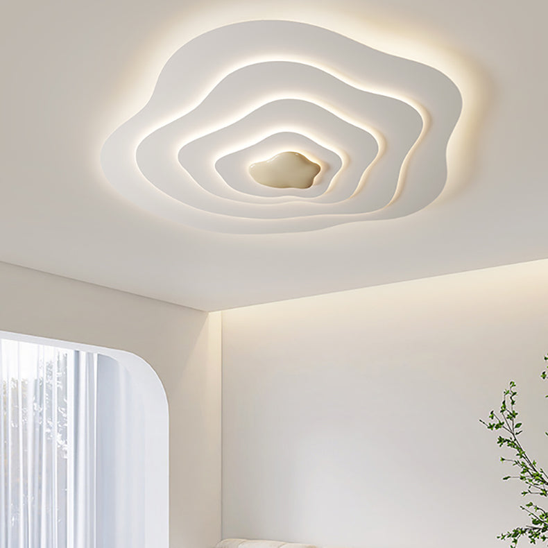 Modern Minimalist Cream Cloud Resin Iron LED Flush Mount Ceiling Light For Bedroom