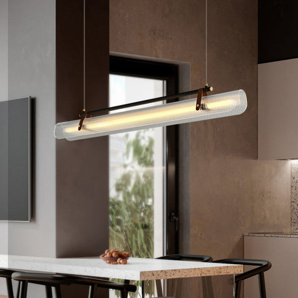 Modern Minimalist Leather Acrylic Linear LED Island Light Pendant Light For Living Room