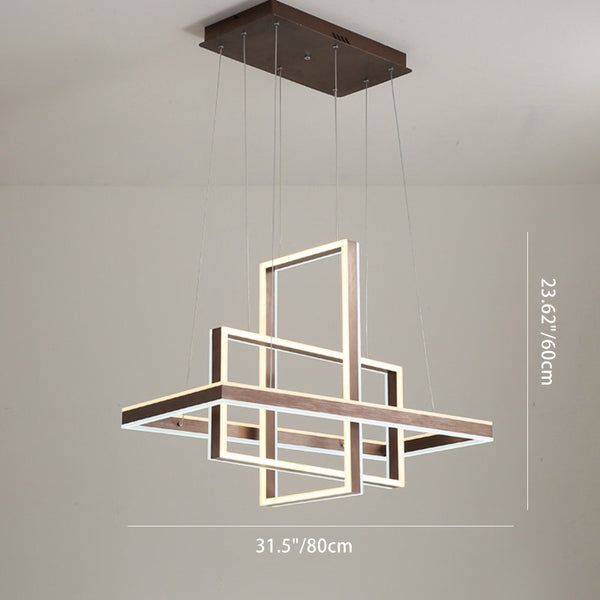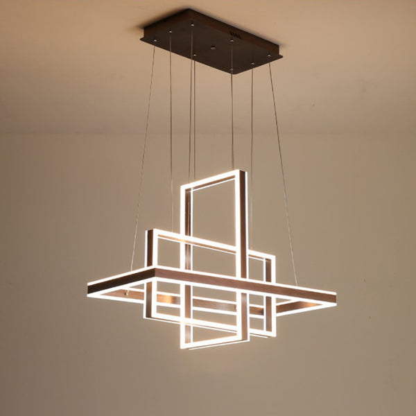 Modern Minimalist Rectangular Quadrilateral ABS Aluminum LED Chandelier For Bedroom
