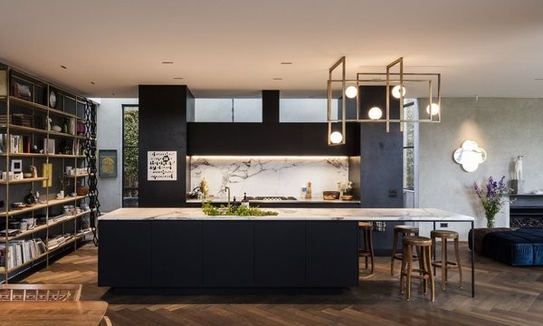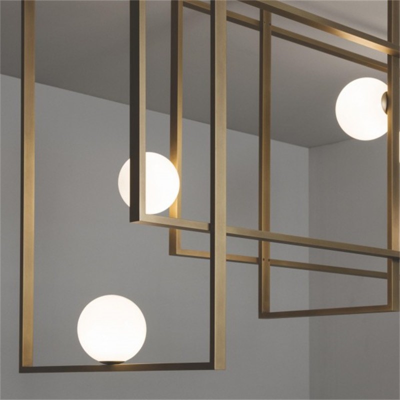 Dutch master of Cubism, Piet Mondrian reduced his shapes to lines and rectangles and his palette to fundamental basics pushing past references to the outside world toward pure abstraction. It is fitting then, that the Mondrian collection from Venicem bears his name, with its elegant geometry and rectangular form. Mondrian Glass chandelier features five mouth-blown Murano glass spheres in white and the metal structure comes in a variety of metallic finishes. For more purist Cubanists, the bulbs have been hidden and integrated into the frame so that the striking form is simplified.