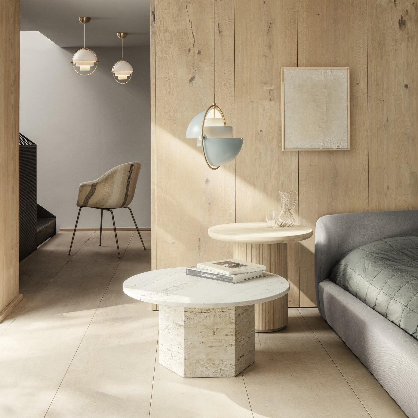 With a rotatable lampshade, the inner hollow cylinders are stacked on top of each other to create different shapes. These opposing shades control the direction of light, which is the main feature of this type of fixture.