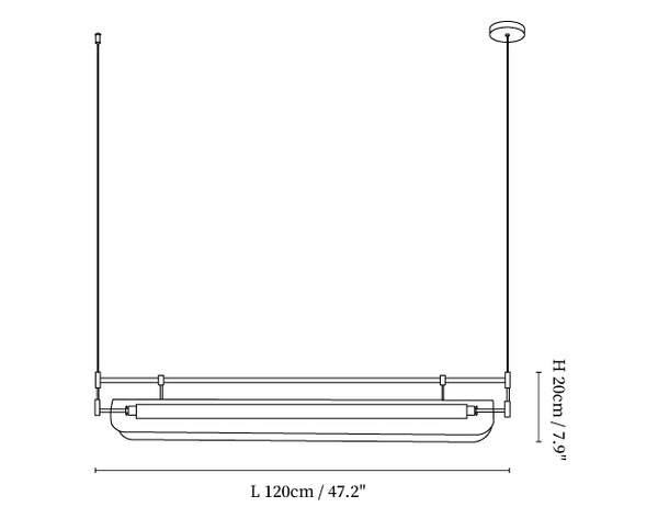 The Linear Strip Chandelier is a unique combination of metal and acrylic with bold yet lightweight design. The metal frame creates an eye-catching silhouette, while the acrylic arches soften its look. Its delicate, almost-disappearing lines create an elegant look, and the stripe pattern of the acrylic gives off a soft and spacious lit effect. This long-spanning light is perfect for dinner tables.