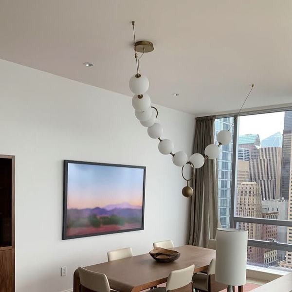 Necklace evokes that supple, elegant and wondrous intersection of jewellery and light. Like a string of pearls, this lamp’s 10 hand-blown glass globes can be arranged in several configurations to adapt to the setting where it will be admired. The finishing touch for this luminous gem is a counterweight and hook that can be added or moved from one “pearl” to another, providing all the flexibility needed for the lamp to fit its space to perfection. Entirely handmade by local artisans, its artistic approach makes Coco a piece of lighting art, bringing finesse, beauty and poetry to any space. From brass to copper to nickel and fossil black, with globes that can be tinted to taste, it offers owners countless ways to possess a unique creation.