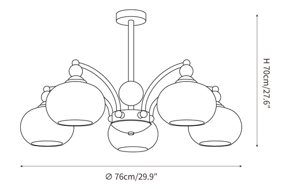 5 heads Size: Dia 76cm x H 70cm / ∅ 29.9″ x H 27.6″