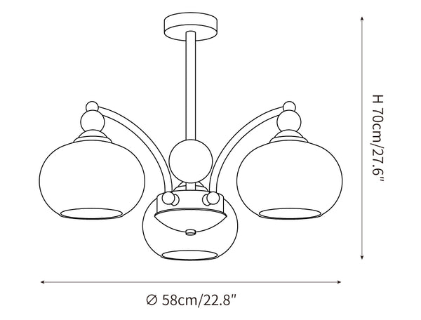 3 heads Size: Dia 58cm x H 70cm / ∅ 22.8″ x H 27.6″