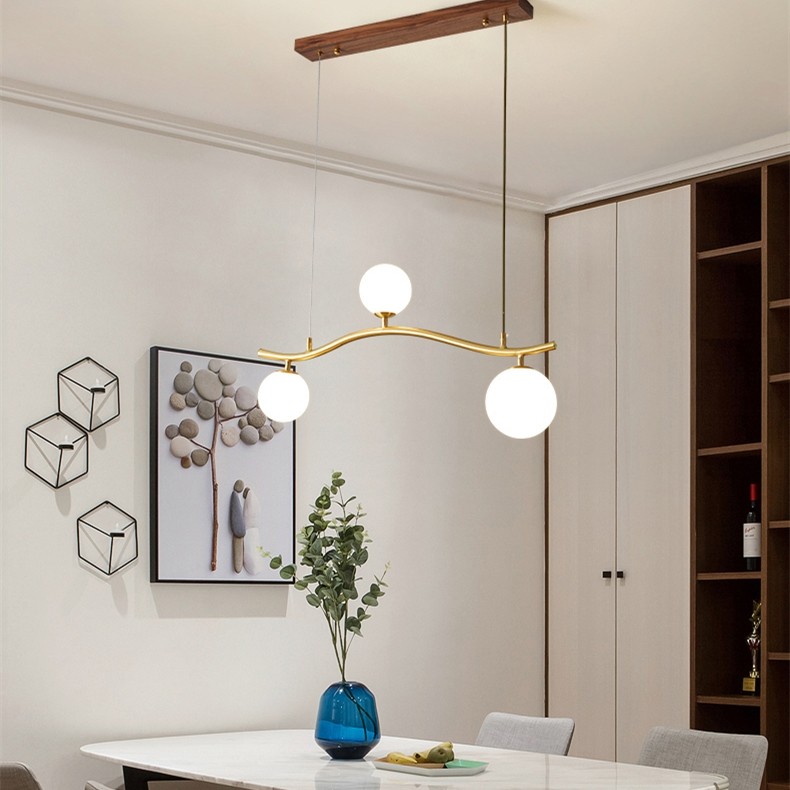 Nordic Minimalist Pendant Lamp is an elegant and graceful light fixture, which expresses the beauty of minimalist. Mainly made by metal and glass, it has a metal rod which is attached with the metal structure, which is like the scenery of some fruits on the branch. It is available in two sizes and two colours of lampshades are available.