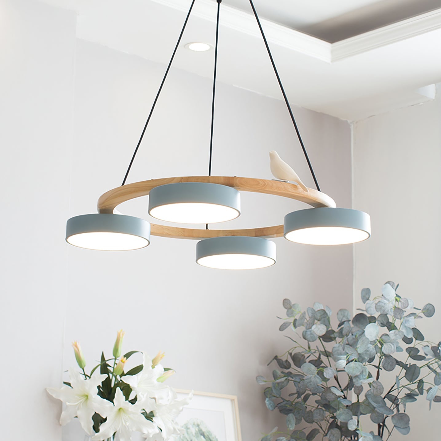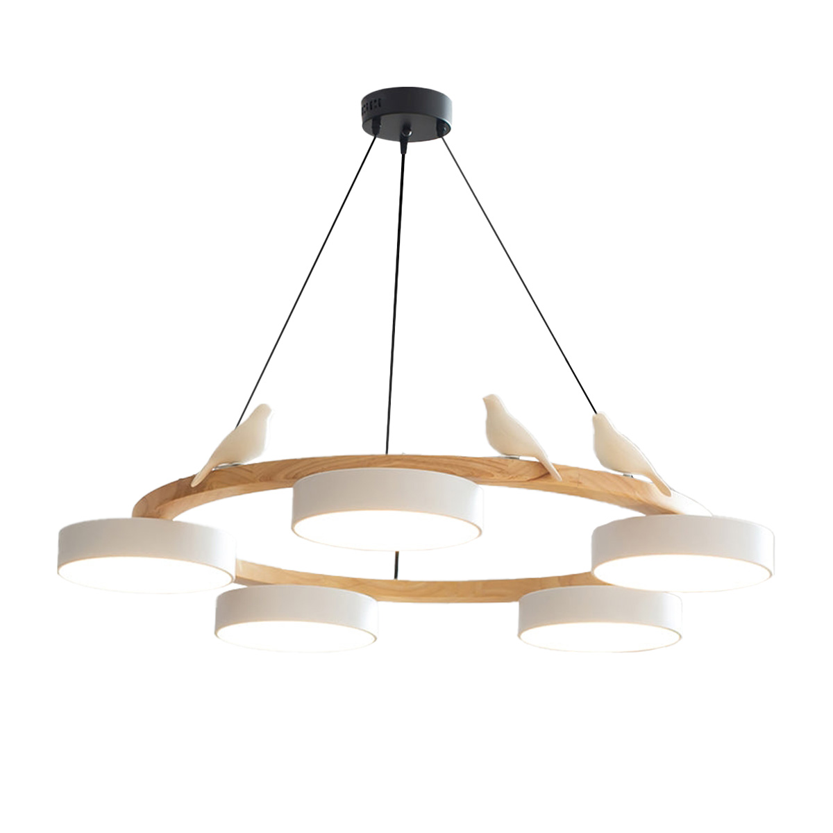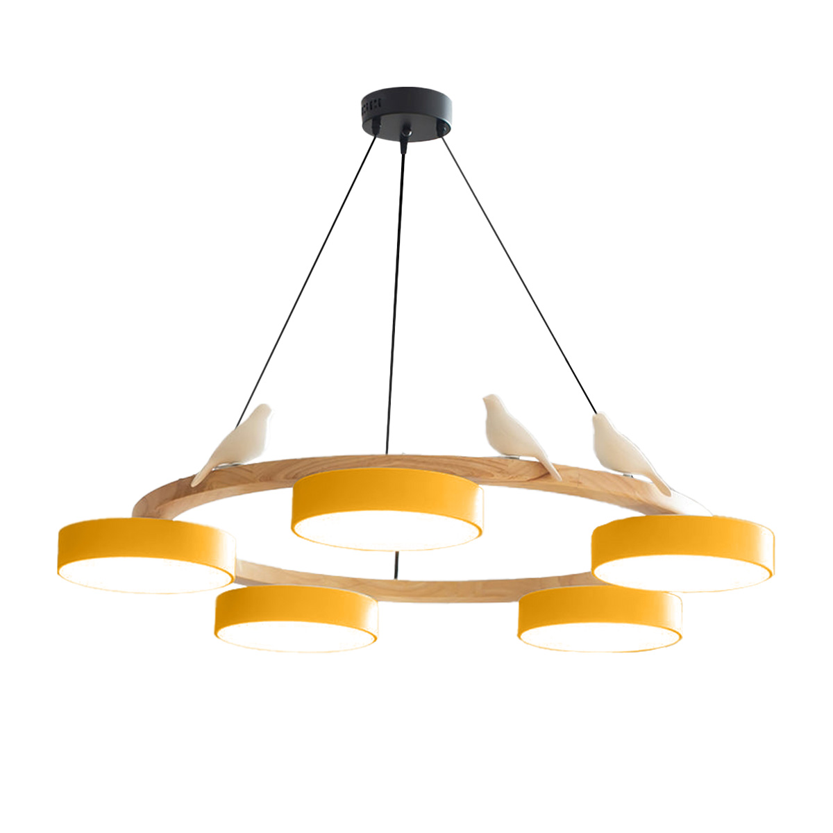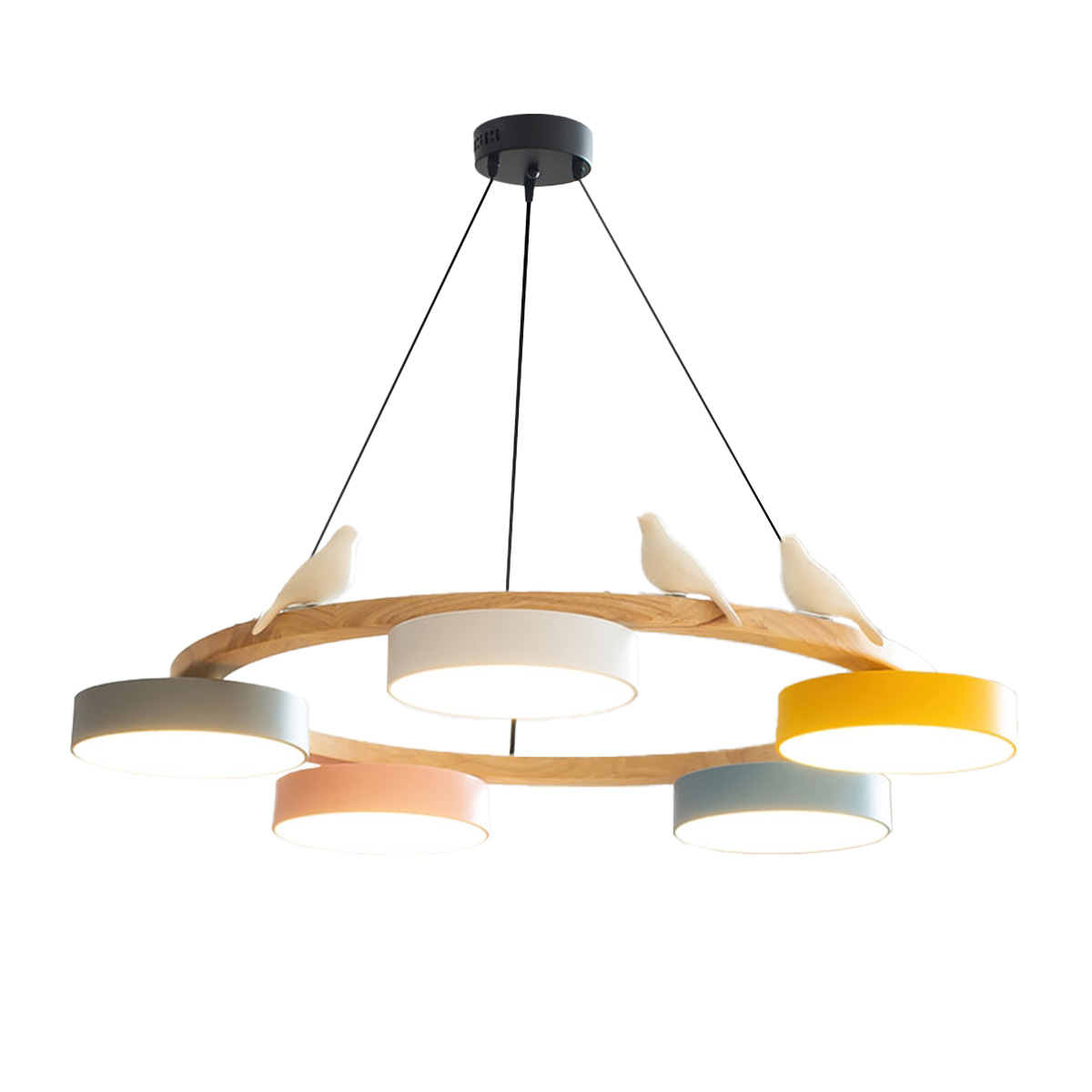 This Nordic Wooden Bird Creative Circle Chandelier combines the essence of modern design and handmade art, with a wooden ring paired with some colorful round lampshades. Each "little bird" seems to add vitality and energy to your home. The colorful disc pendant light is not only a lighting tool, but also a highlight of home decoration, filling your space with warmth and artistic atmosphere.