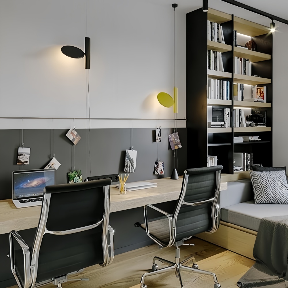 The OK ceiling lamp features a unique and modern design that is both stylish and functional. Its round base and adjustable cylindrical shade allow for versatile lighting effects, making it suitable for various spaces, from cozy bedrooms to spacious living rooms.
