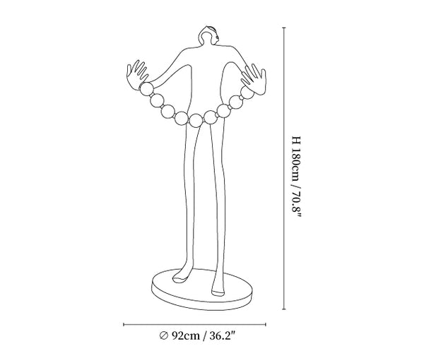 The Orb Juggler Floor Lamp is inspired by the whimsical elegance of a circus performer. This unique lamp features a sleek, elongated figure holding a string of glowing orbs, creating a playful yet sophisticated light display. The glossy black finish adds a modern touch, making it a captivating piece for any contemporary living room, study, or eclectic space. The Orb Juggler Floor Lamp brings a sense of movement and fun to your decor, providing both light and art in one striking design.