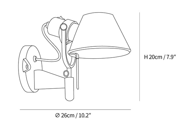 The Parete Wall Lamp adds cool sophistication to any workspace or office. Crafted from polished aluminum in a two-arm design, its metallic hue provides a luxurious touch. Plus, an adjustable conical shade offers precision lighting. Perfect for illuminating any setting with a stylish and exclusive vibe.
