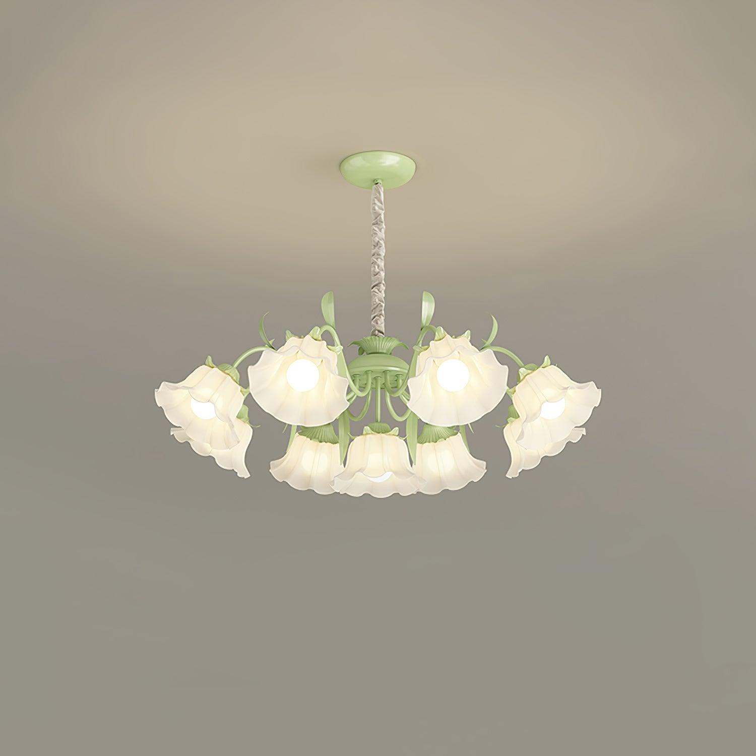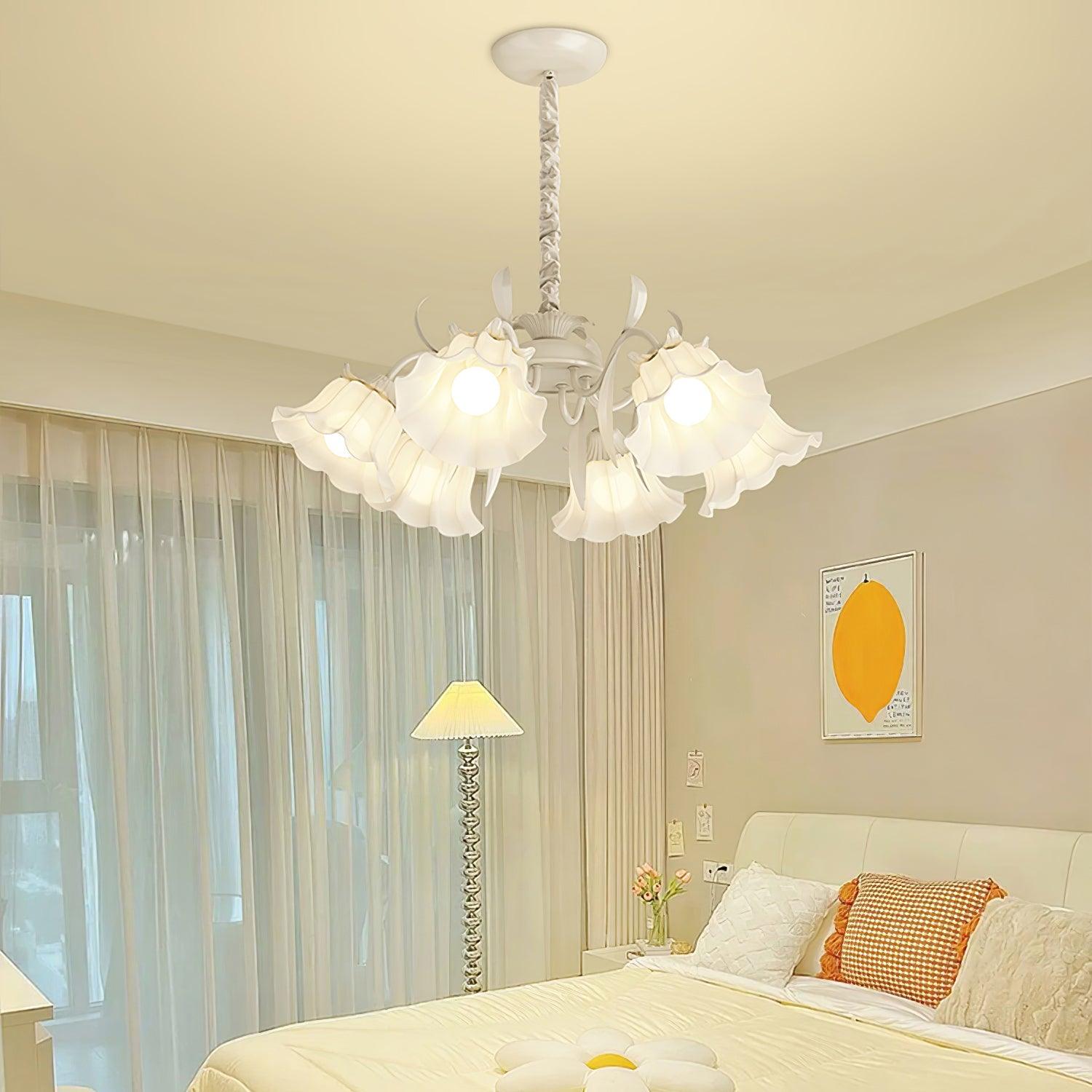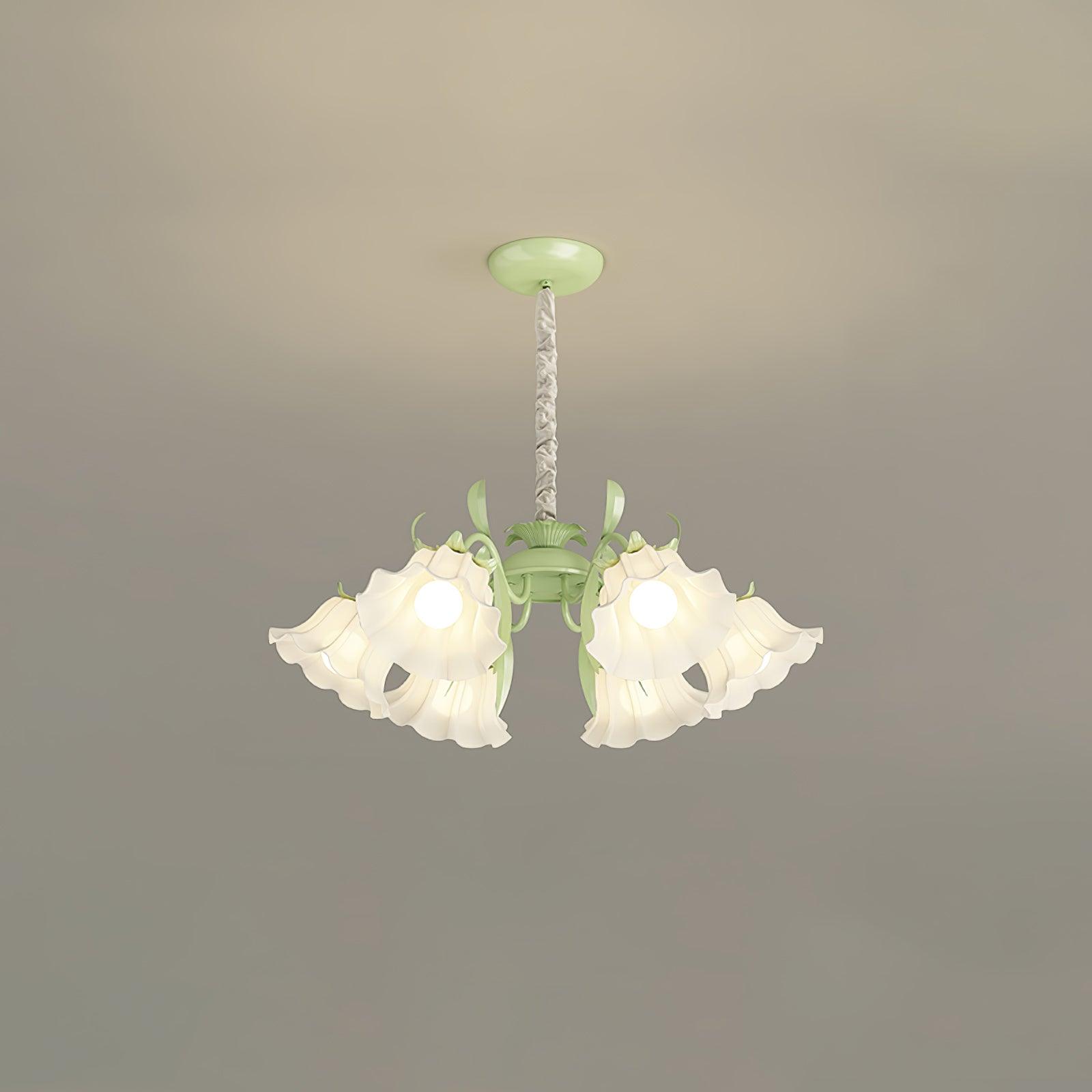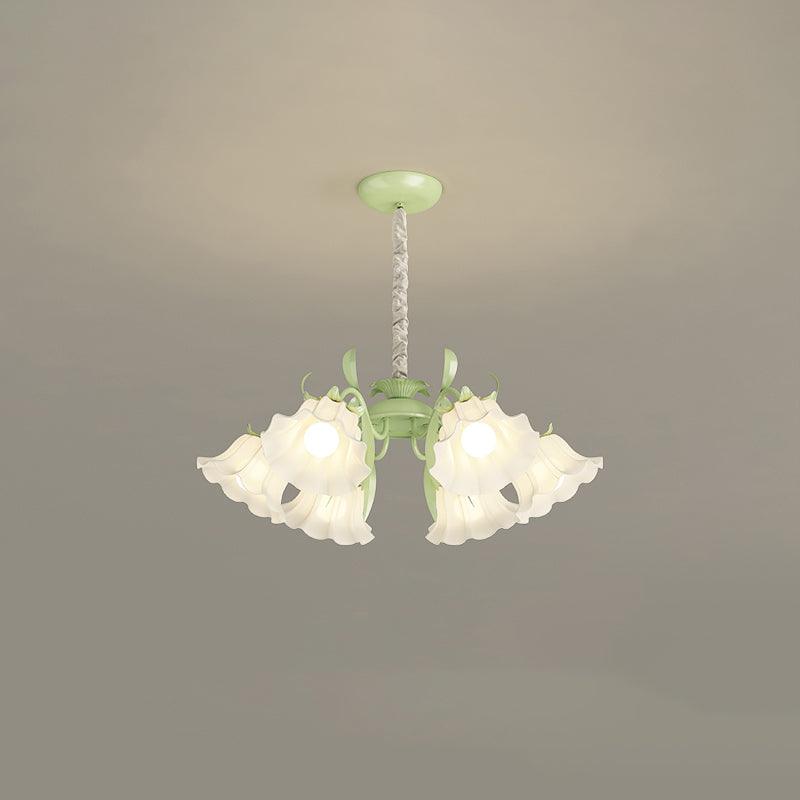 Introducing the Pastoral Flower Chandelier, designed to add a touch of pastoral elegance to any dining room. This chandelier features a cream glass pendant light, decorated with intricate floral designs, sure to enhance the atmosphere of your home. Designed to bring a unique and timeless style to any dining room.