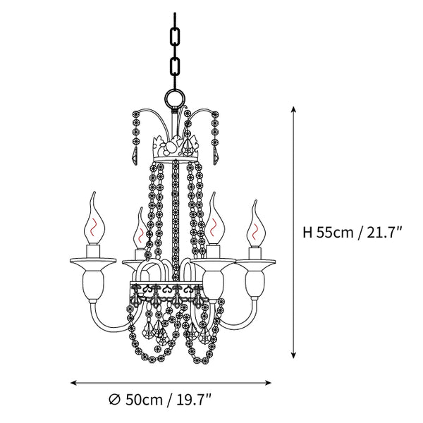 Size: Dia 50cm x H 55cm / ∅ 19.7″ x H 21.7″ (E14*4)