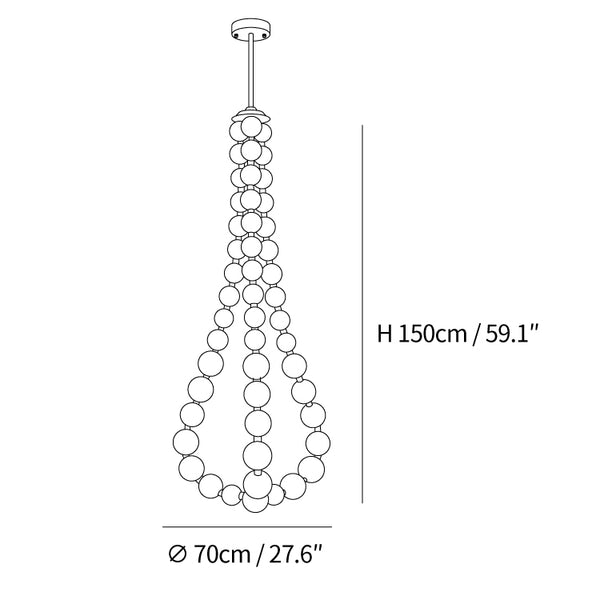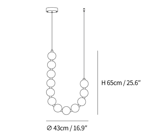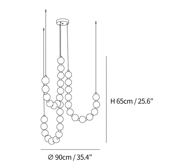 This stylish Pearl Necklace Chandelier illuminates any space with a brass-constructed base and white plastic orbs. Its unique design will draw admiration and attention, merging a distinctive style with universal and timeless appeal. Its unique lighting forms will highlight the interior of your home, creating a warm, cozy atmosphere for gatherings and quality time with family.