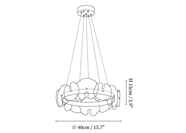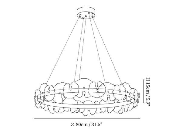 The Petal Halo Chandelier is adorned with delicate glass petals arranged in a circular formation. This design captures the beauty of blooming flowers, with each petal reflecting light in a graceful manner. It's a perfect centerpiece for dining rooms or living areas, adding a floral elegance to the space.