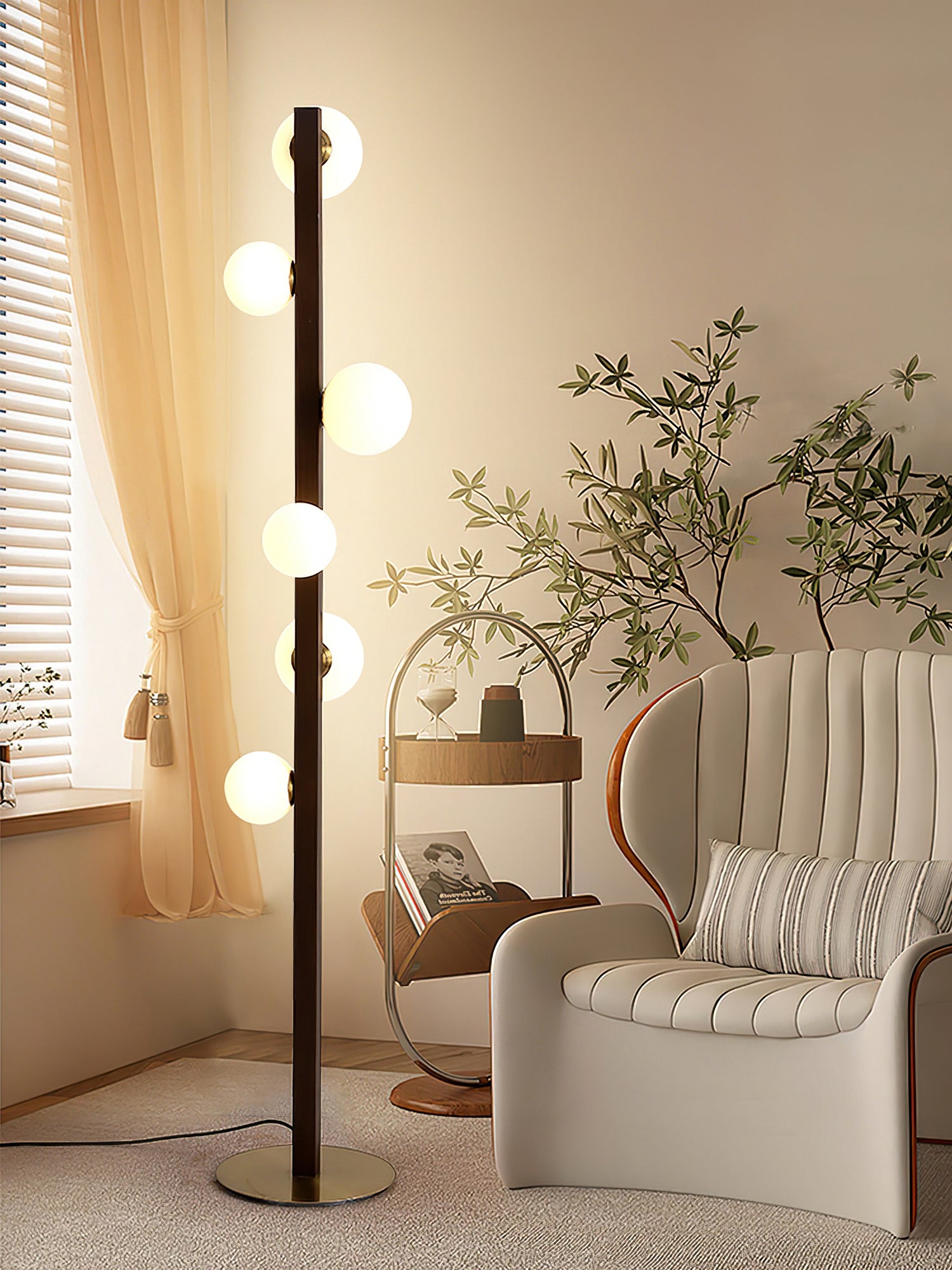 Discover the beauty of the night sky with the elegant wood structure of the Planeta Wood Floor Lamp. The warm, glowing orbs along the smooth wooden pole create a captivating visual resembling planets in orbit. Combining natural wood and modern lighting, this lamp adds a touch of refinement and warmth to any room.
