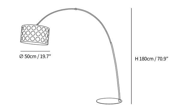 The Polka Arc Fabric Floor Lamp is a playful yet sophisticated addition to any room with its whimsical pattern and elegant design. This lamp features a sturdy metal base and an overarching frame that creates an impressive arc, culminating in a charming fabric shade adorned with a polka dot motif. The contrast of the bold dots against the subtle fabric backdrop adds a contemporary twist to a classic design, while the curvature of the lamp introduces a sense of fluidity and grace to your space. Perfect for a reading corner, living room, or any area that needs a touch of whimsy, this floor lamp not only illuminates your environment but also serves as a statement piece that combines fun and functionality with its chic, eye-catching design.