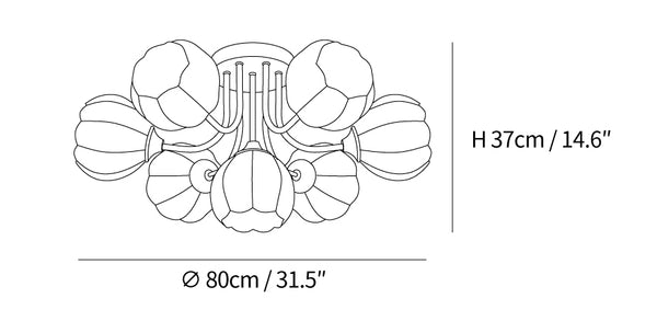 9 heads Size: Dia 80cm x H 37cm / ∅ 31.5″ x H 14.6″