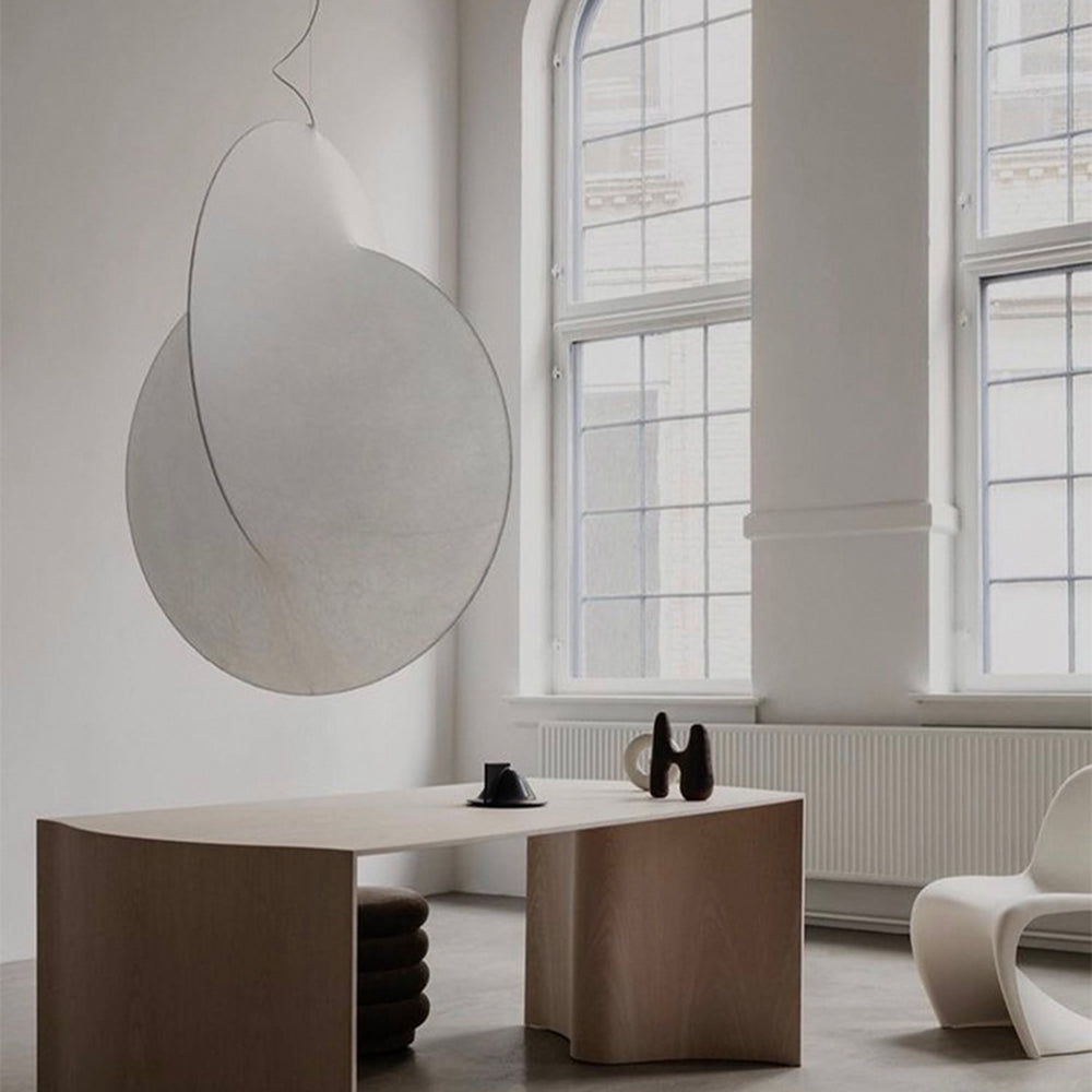 % is recyclable. The flexibility of this paper-like shade allows the slim frame to emphasize the cloud-like properties of the pendant. The light is equipped with a slim LED light source, and all components fit into a slim box for easy transport. A truly modern approach to lighting.