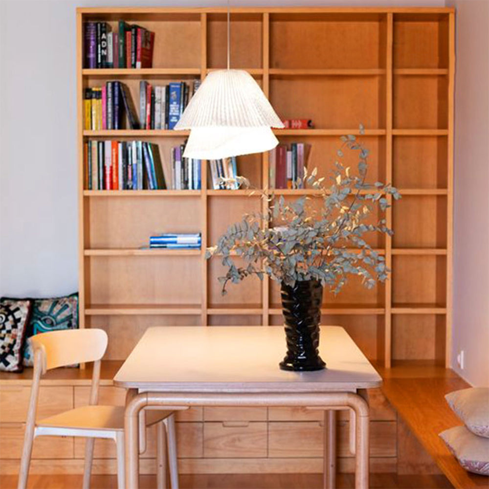 % is recyclable. The flexibility of this paper-like shade allows the slim frame to emphasize the cloud-like qualities of the pendant. The light is equipped with a slim LED light source and all components fit into a slim box for easy transport. A truly modern approach to lighting.